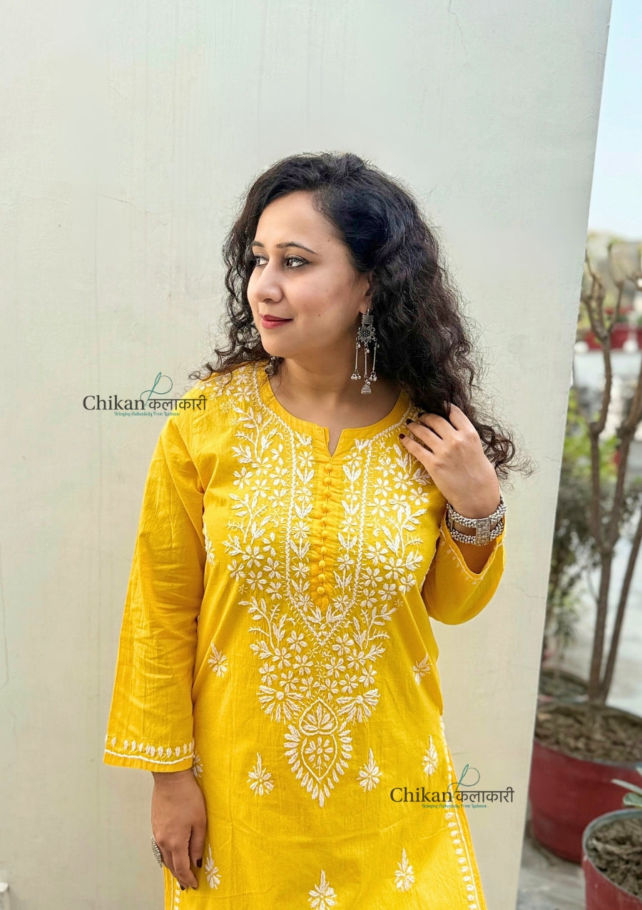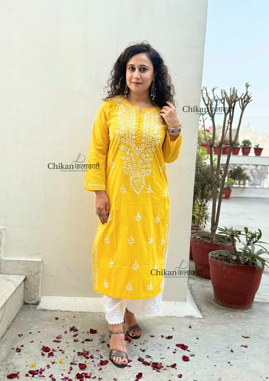 Introducing Geet Cotton Chikankari Kurti, a classic and stylish piece crafted from comfortable cotton fabric and adorned with hand embroidery. This solid-colored kurti offers both comfort and sophistication, making it a must-have addition to your wardrobe. Elevate your style with this timeless and elegant kurti.