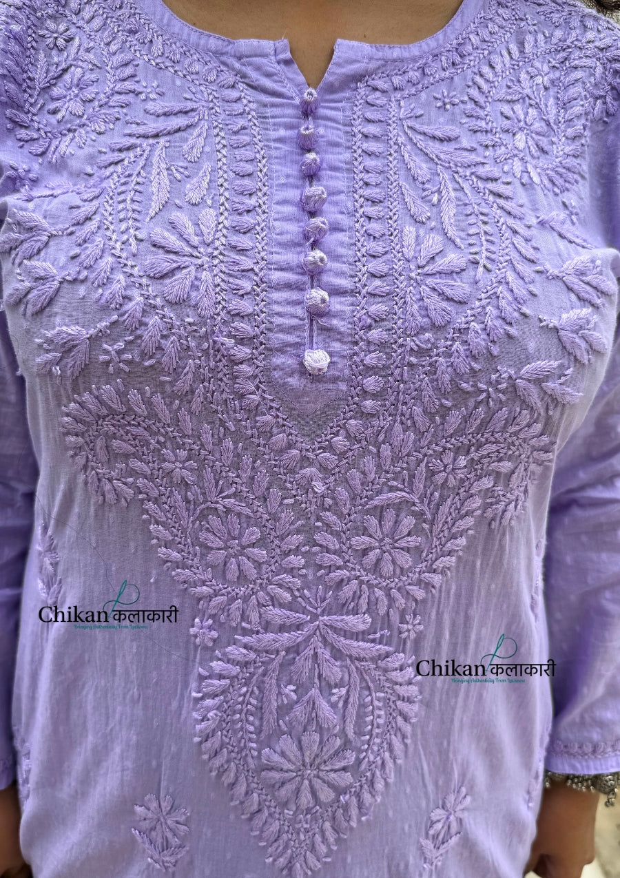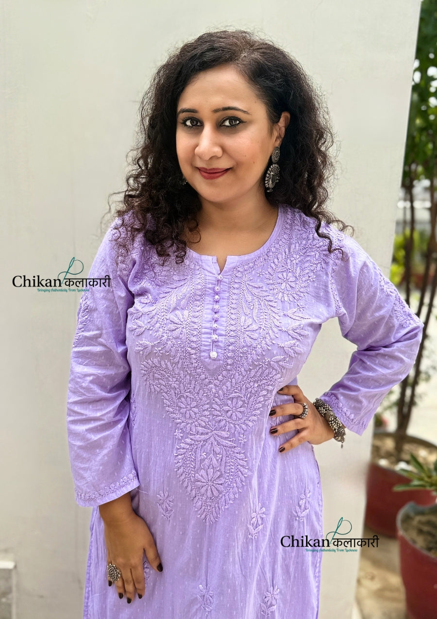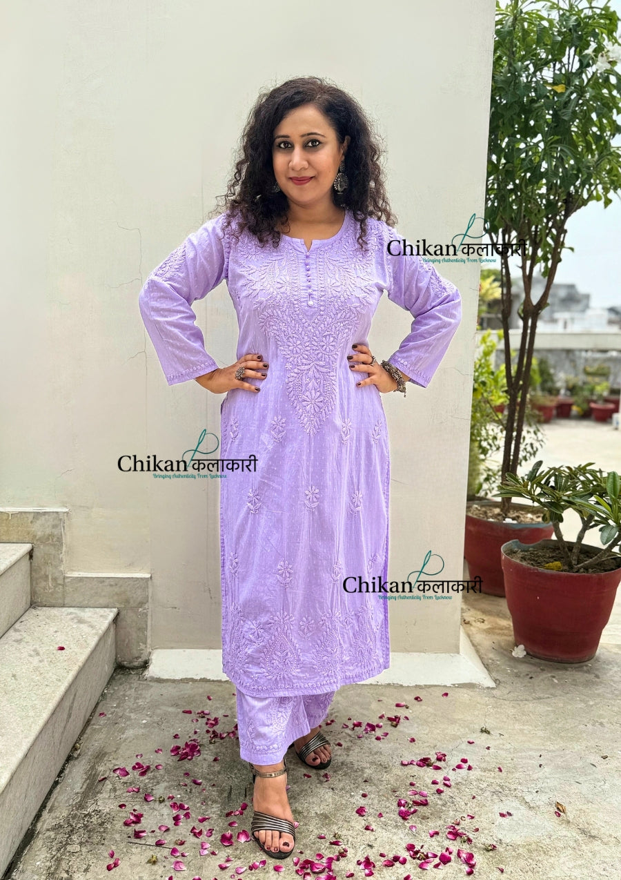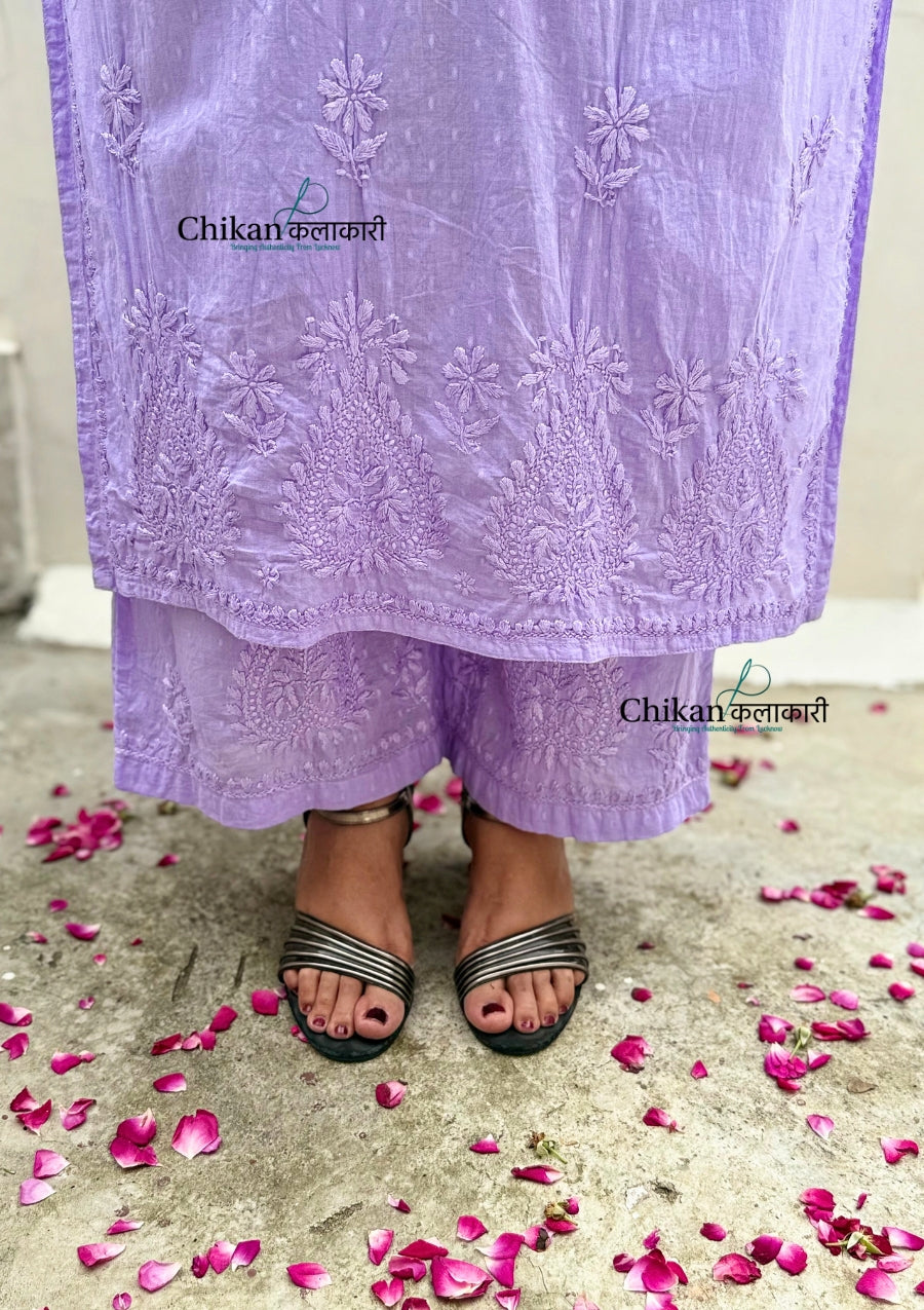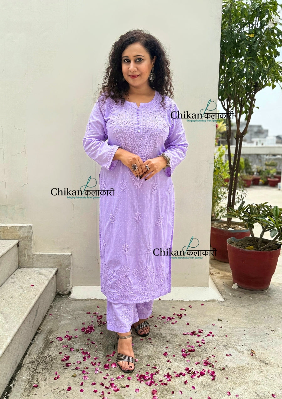 Heer Cotton Chikankari Kurti Set - Lavender