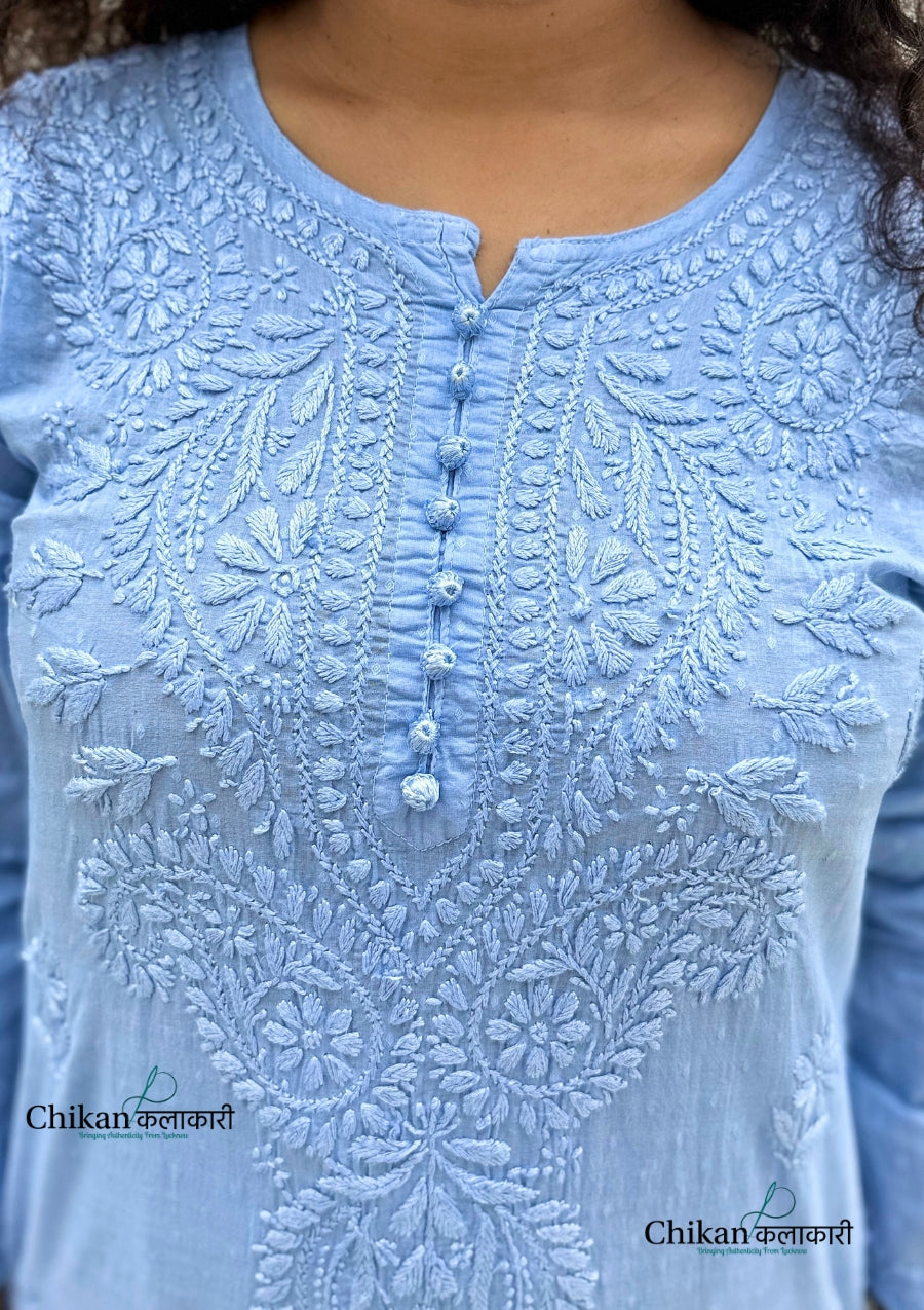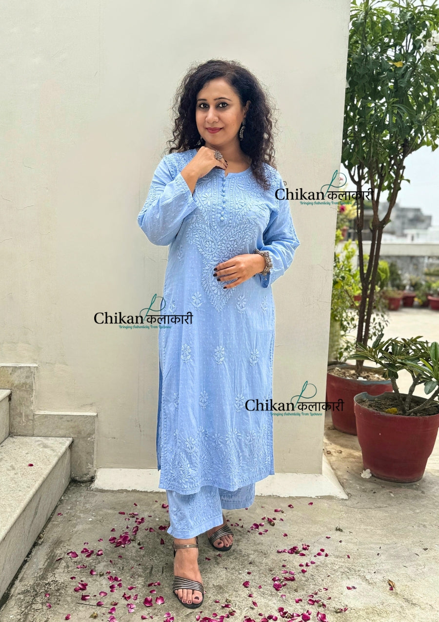 Heer Cotton Chikankari Kurti Set - Powder Blue