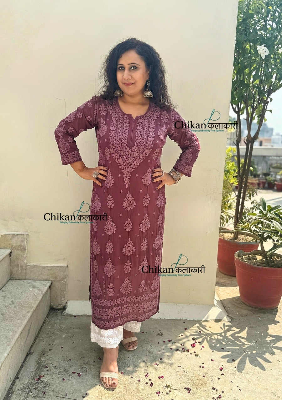 Inaaya Viscose Chikankari Kurti - Plum Rose