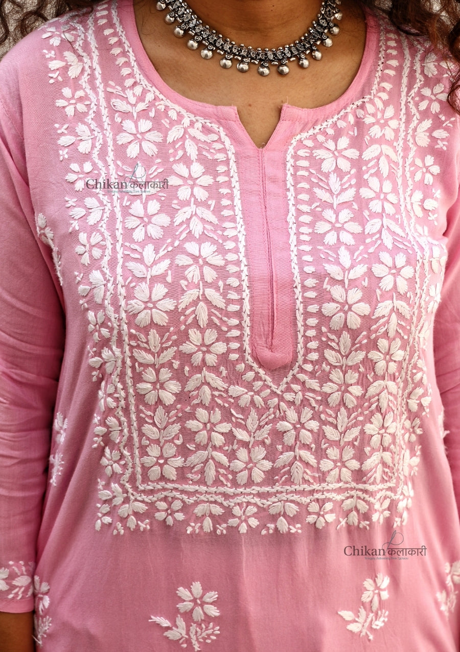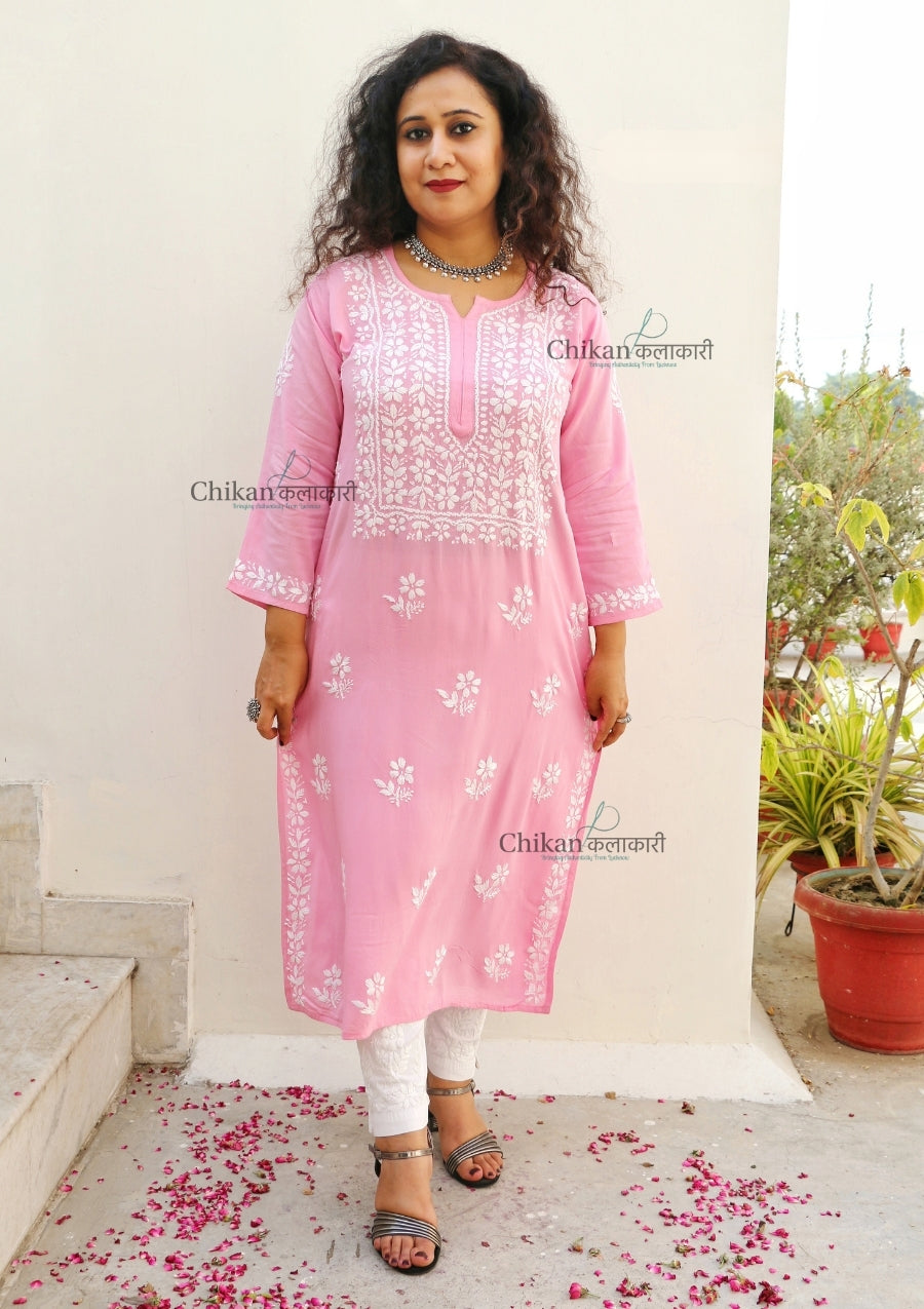 Iqra Chikankari Kurti is crafted from soft rayon fabric and features intricate Chikankari hand embroidery on front, back, and sleeves. This Lucknowi Chikankari Kurti is perfect for office, everyday, and special occasions, making it a must-have piece in your wardrobe.