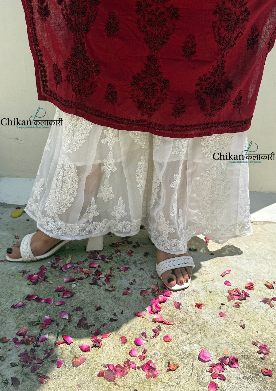 Leena Georgette Chikankari Sharara( Fits sizes upto XL size)