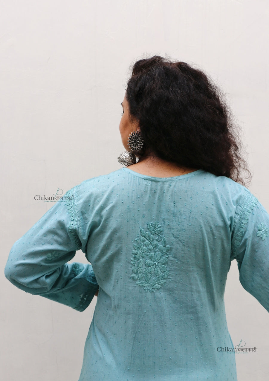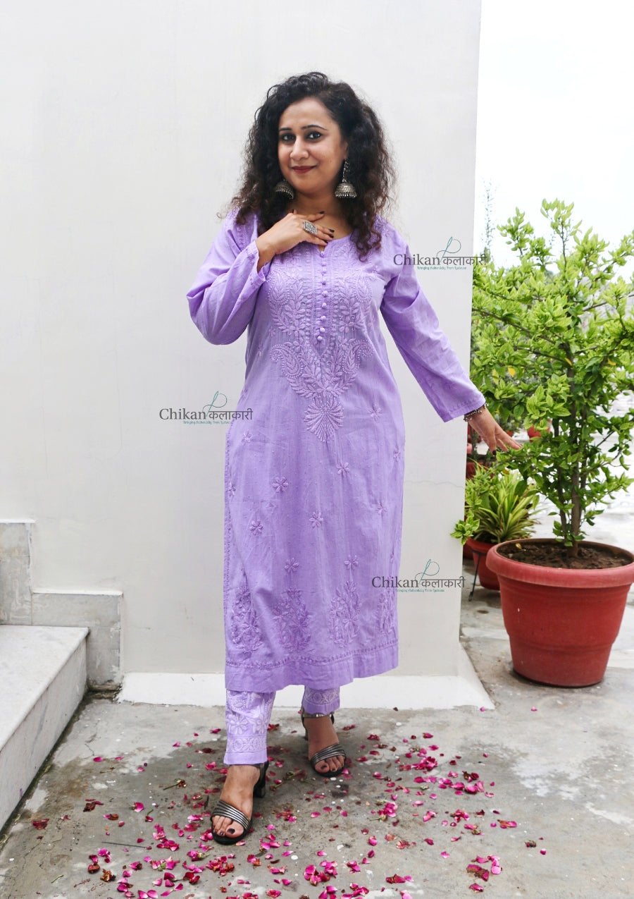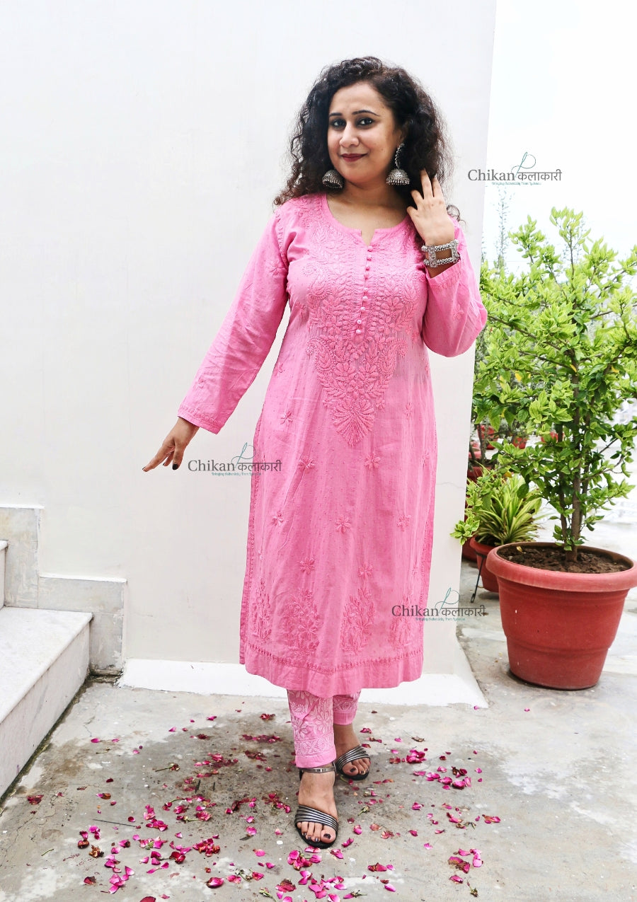Discover the elegance and comfort of our Mahira Cotton Chikankari Kurti Set. Made with soft and lightweight dobby cotton fabric, this set features intricate hand embroidery on the kurti. To complete the look, matching chikankari pants are included. This timeless chikankari set is a favorite among influencers. A wardrobe must-have!