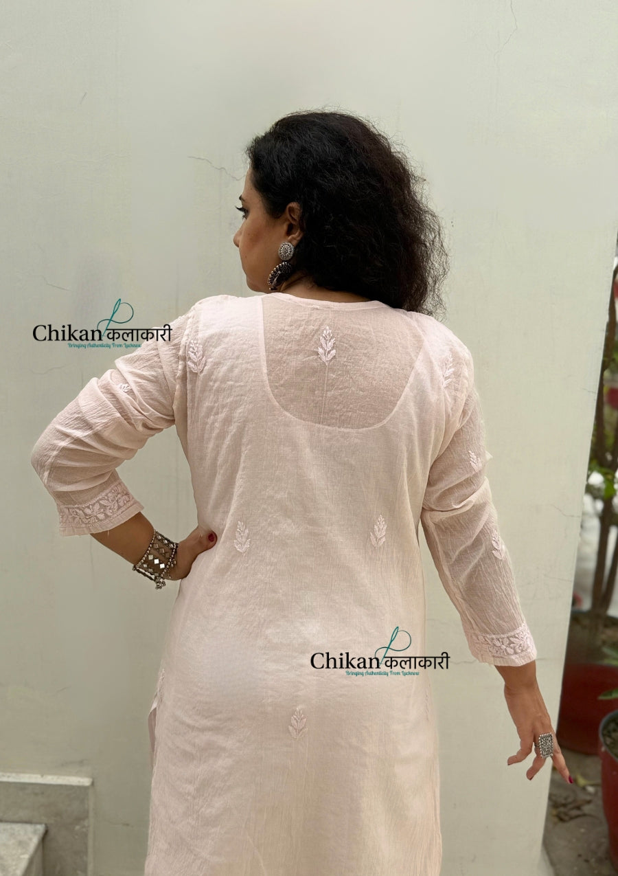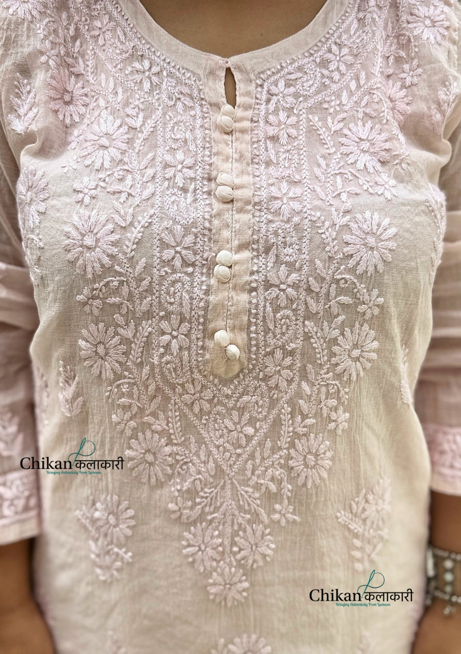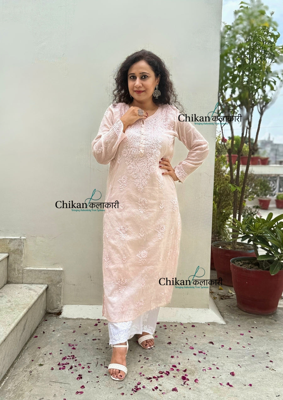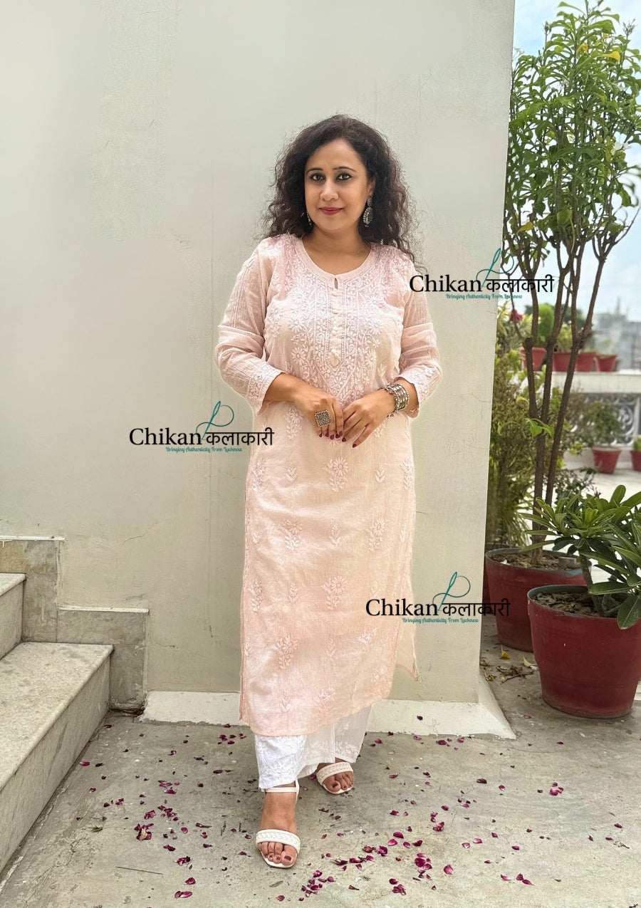 Experience luxury and comfort with Mannat hand-embroidered Chikankari Kurti. Crafted from premium soft Mul Chanderi fabric, this hand-embroidered Chikankari Kurti exudes elegance. The intricate hand embroidery adds a touch of artisanal craftsmanship to this piece. Elevate your wardrobe with this rich and stylish kurti.