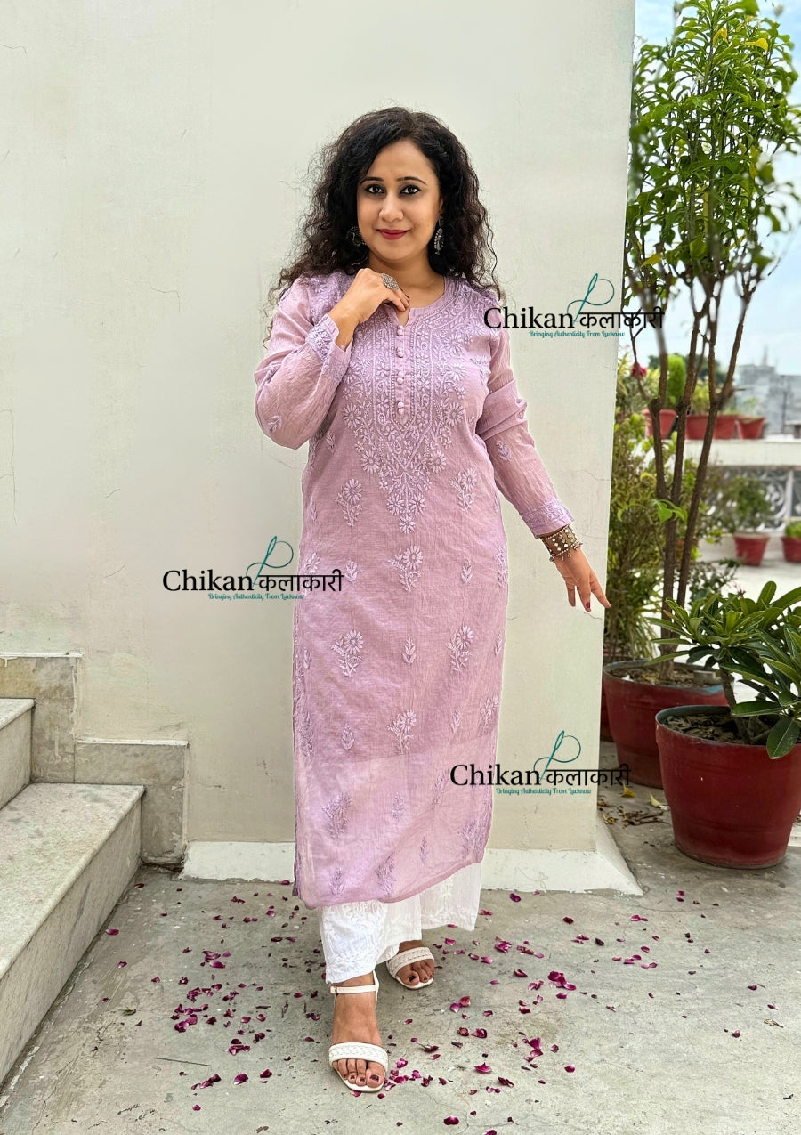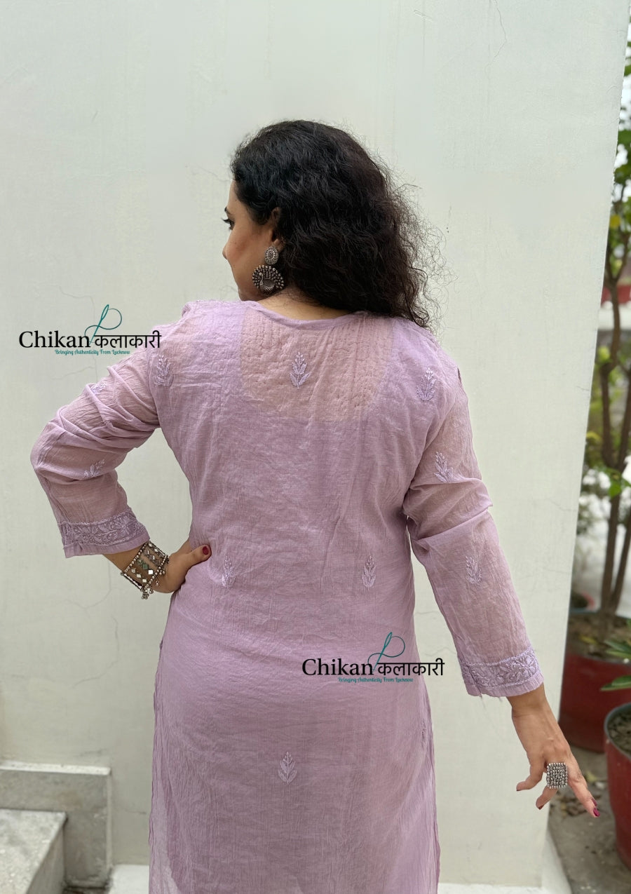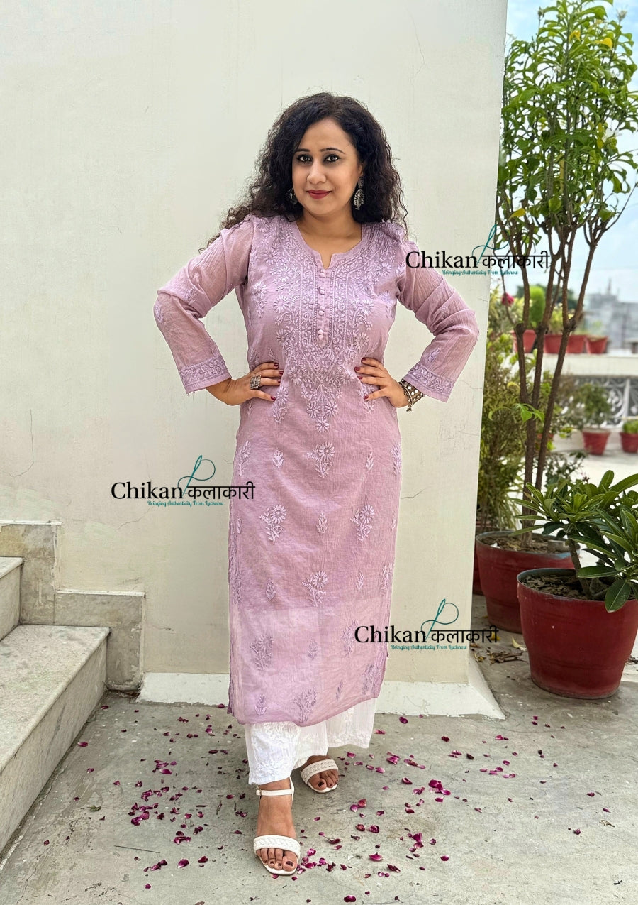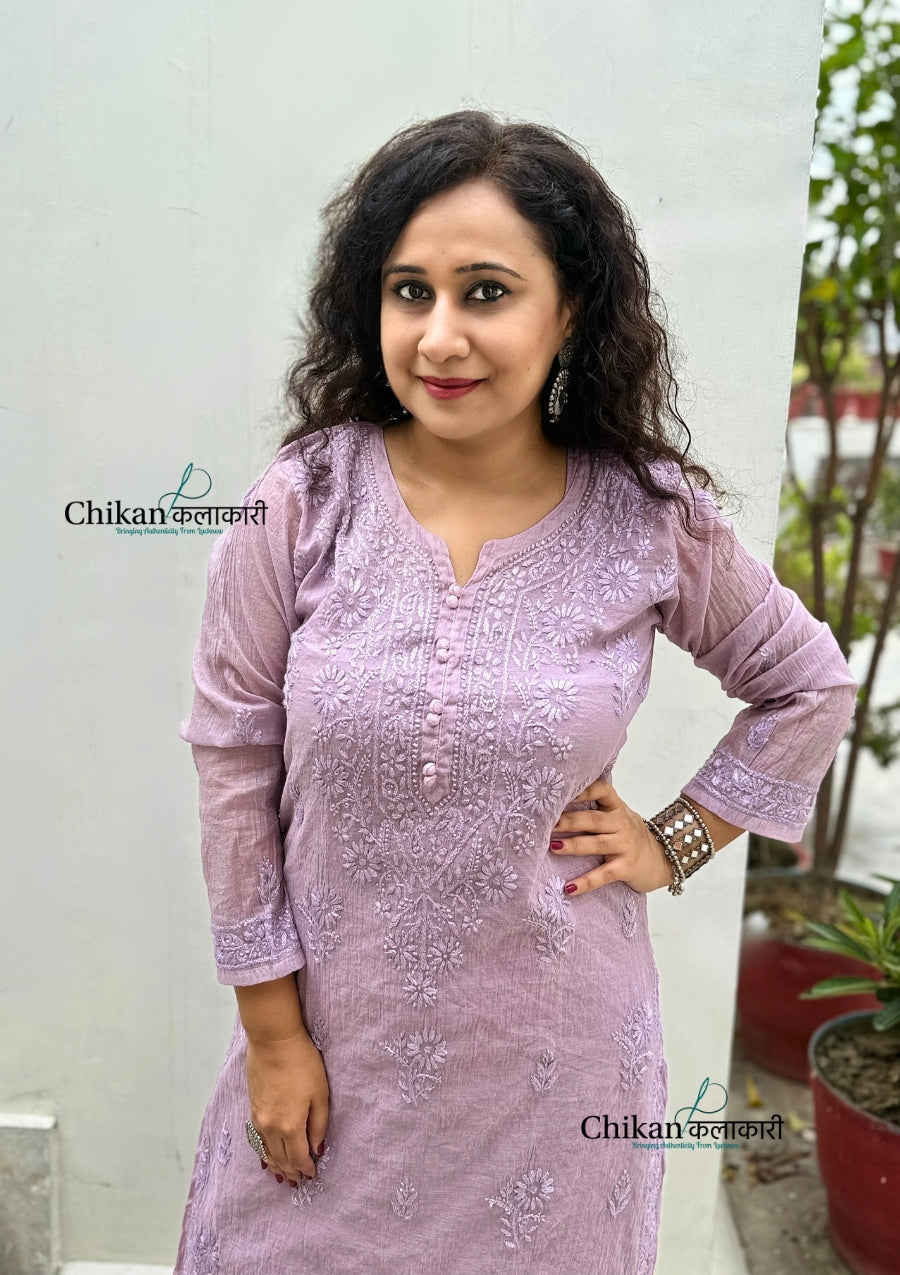 Experience luxury and comfort with Mannat hand-embroidered Chikankari Kurti. Crafted from premium soft Mul Chanderi fabric, this hand-embroidered Chikankari Kurti exudes elegance. The intricate hand embroidery adds a touch of artisanal craftsmanship to this piece. Elevate your wardrobe with this rich and stylish kurti.