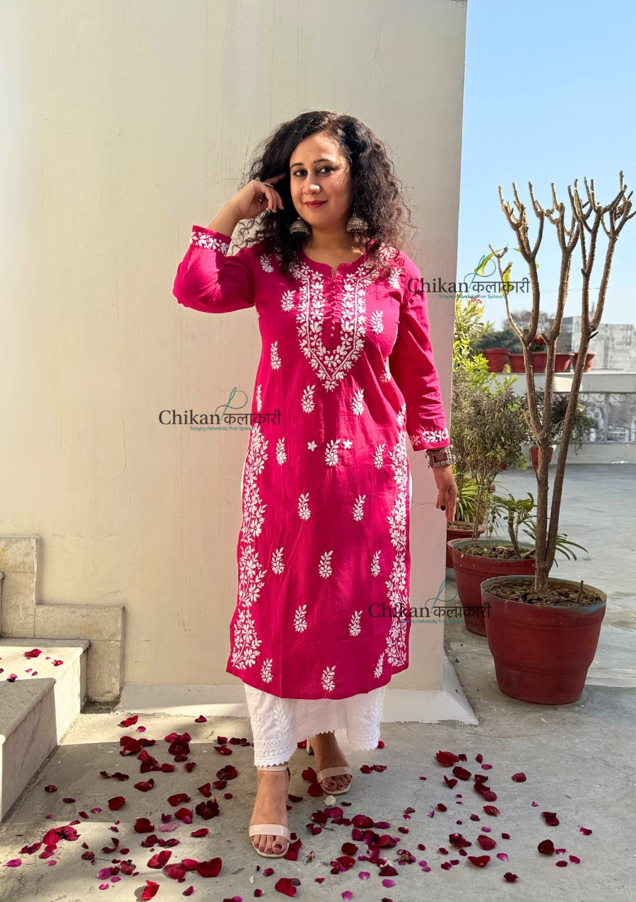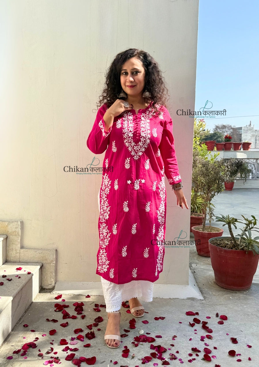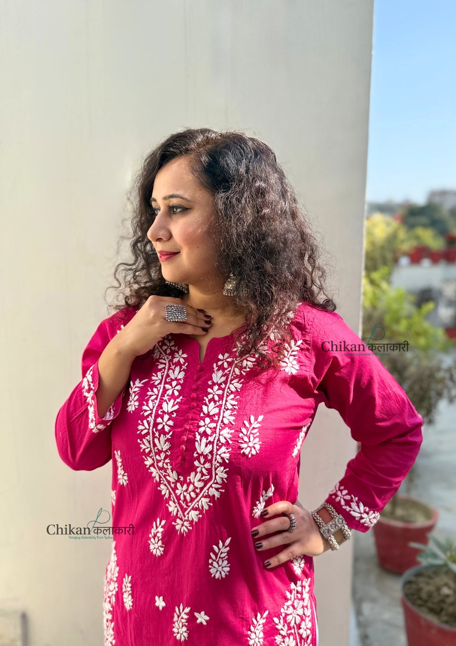 Meera Cotton Chikankari Kurti - Magenta