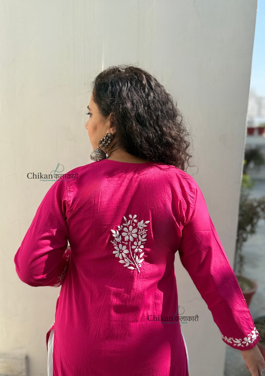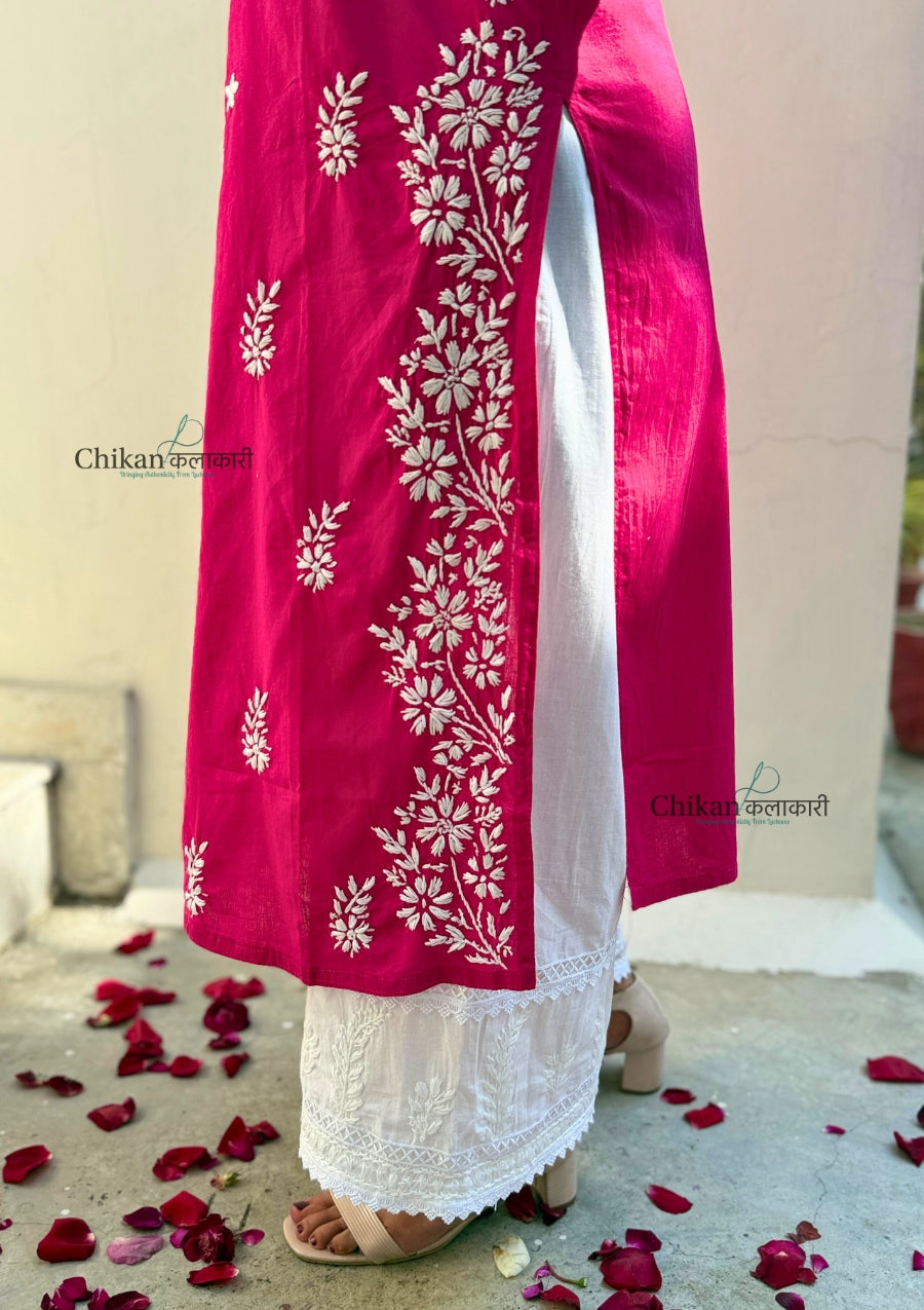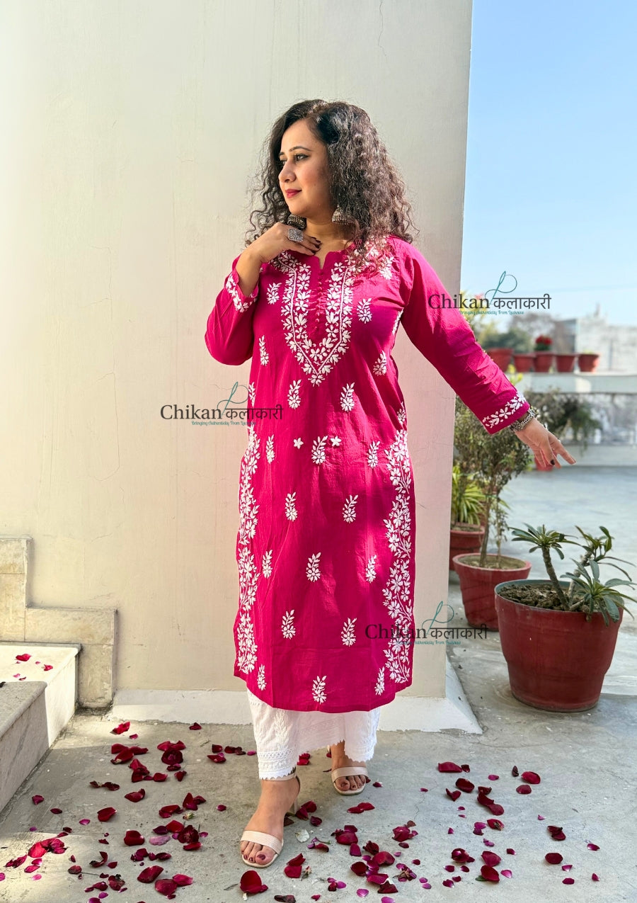 Meera Cotton Chikankari Kurti - Magenta