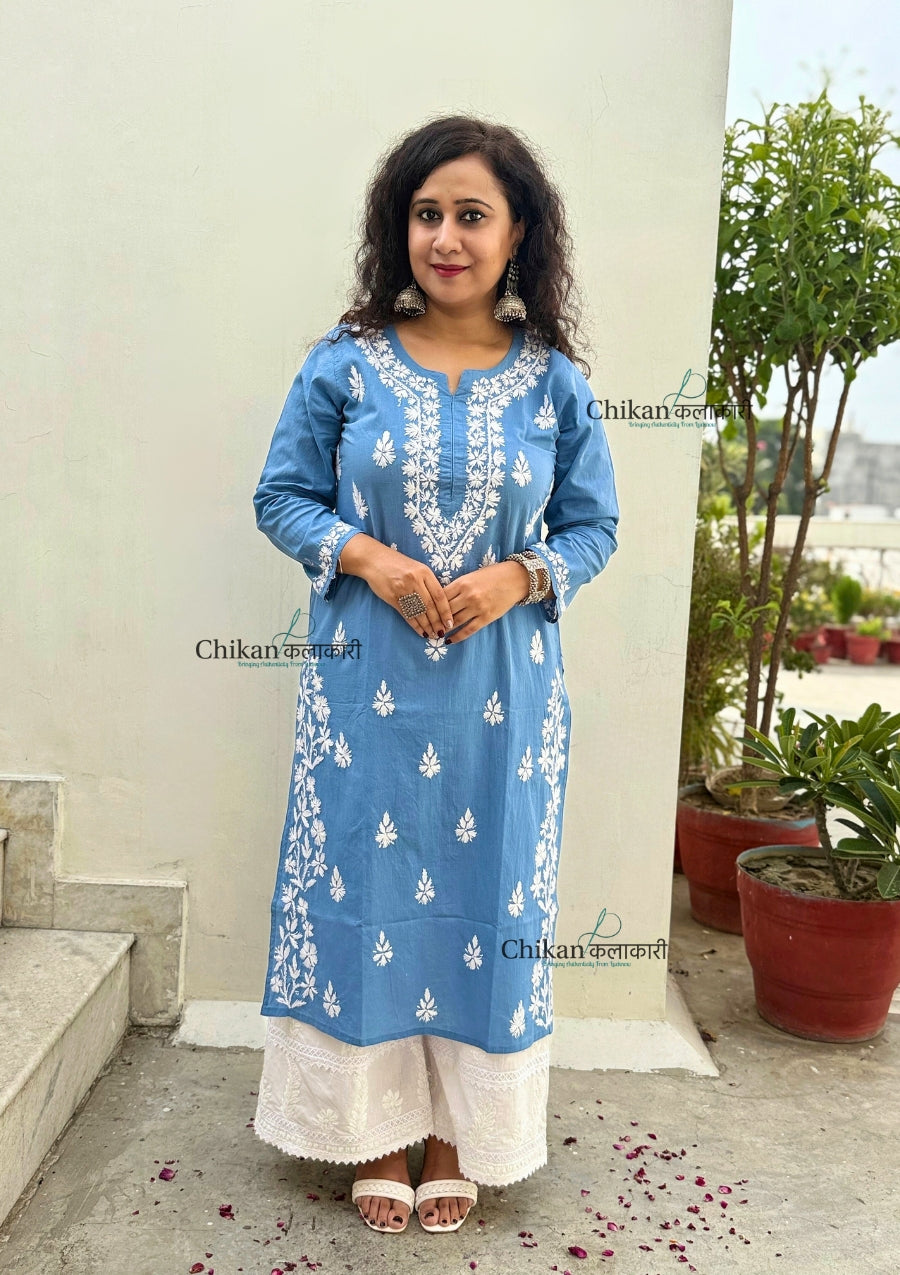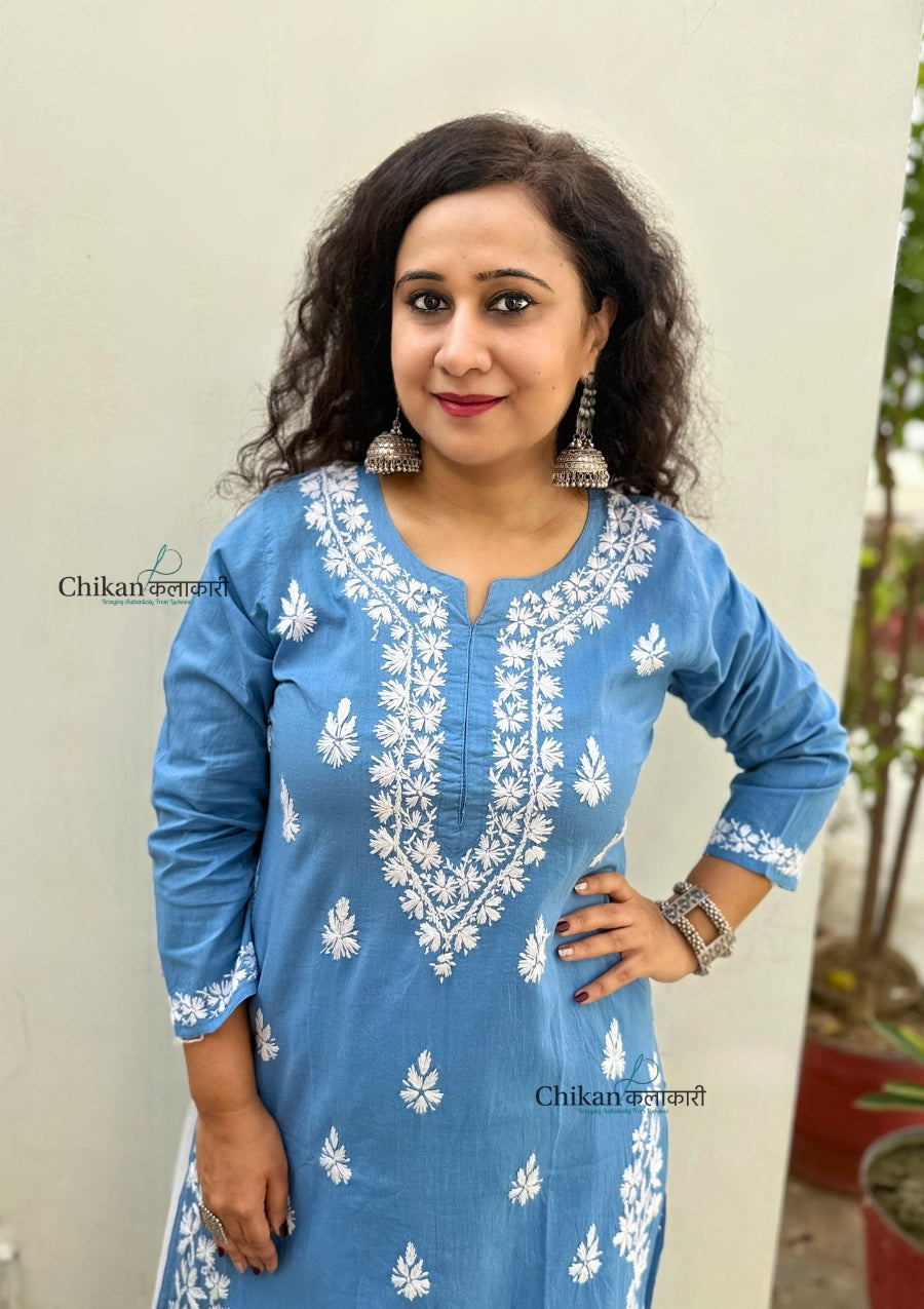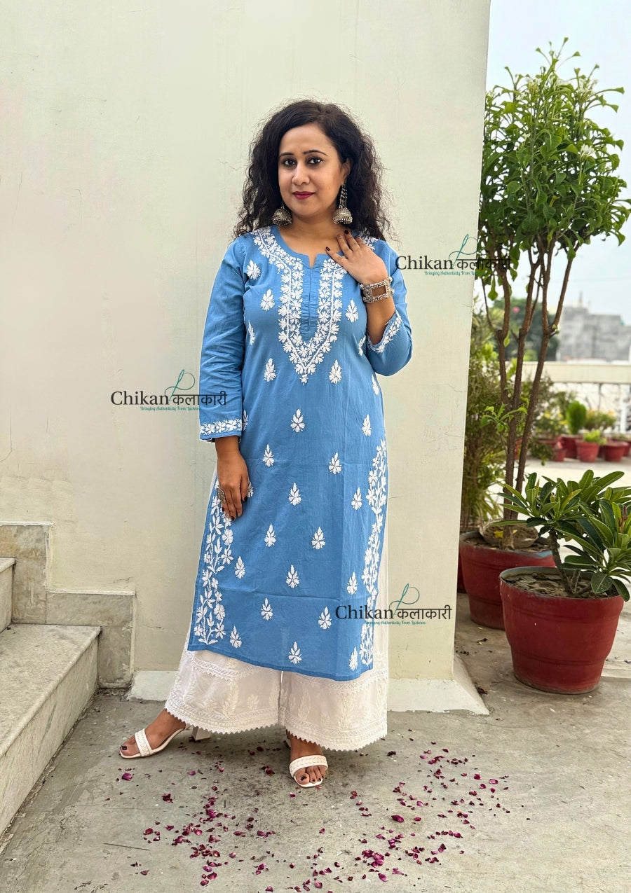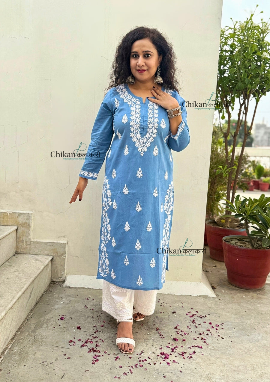 Introducing Meera Cotton Chikankari Kurti, made from comfortable cotton fabric and adorned with elegant hand embroidery. This solid-colored kurti provides comfort and adds a touch of sophistication to your attire. Elevate your wardrobe with this timeless, stylish piece.