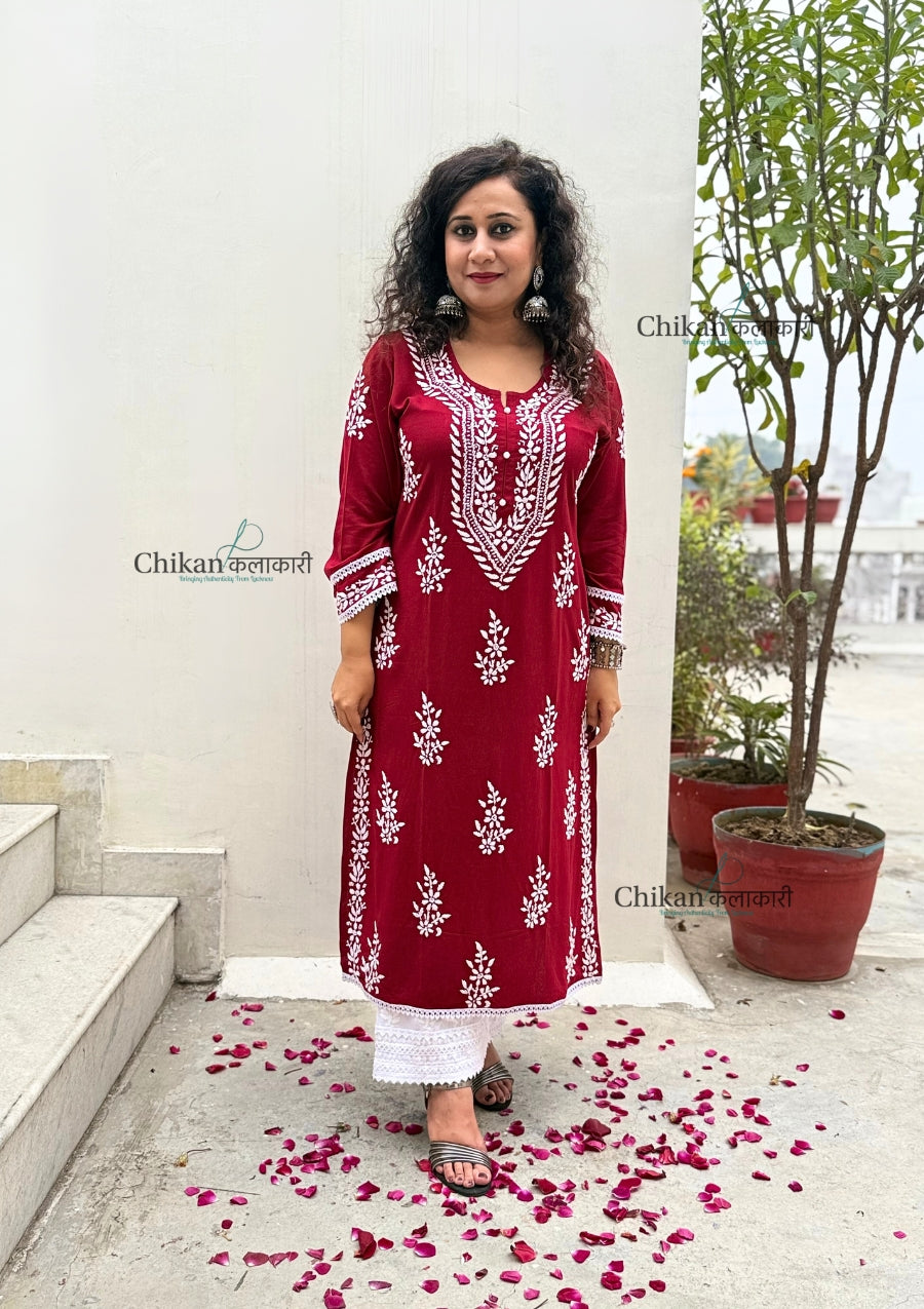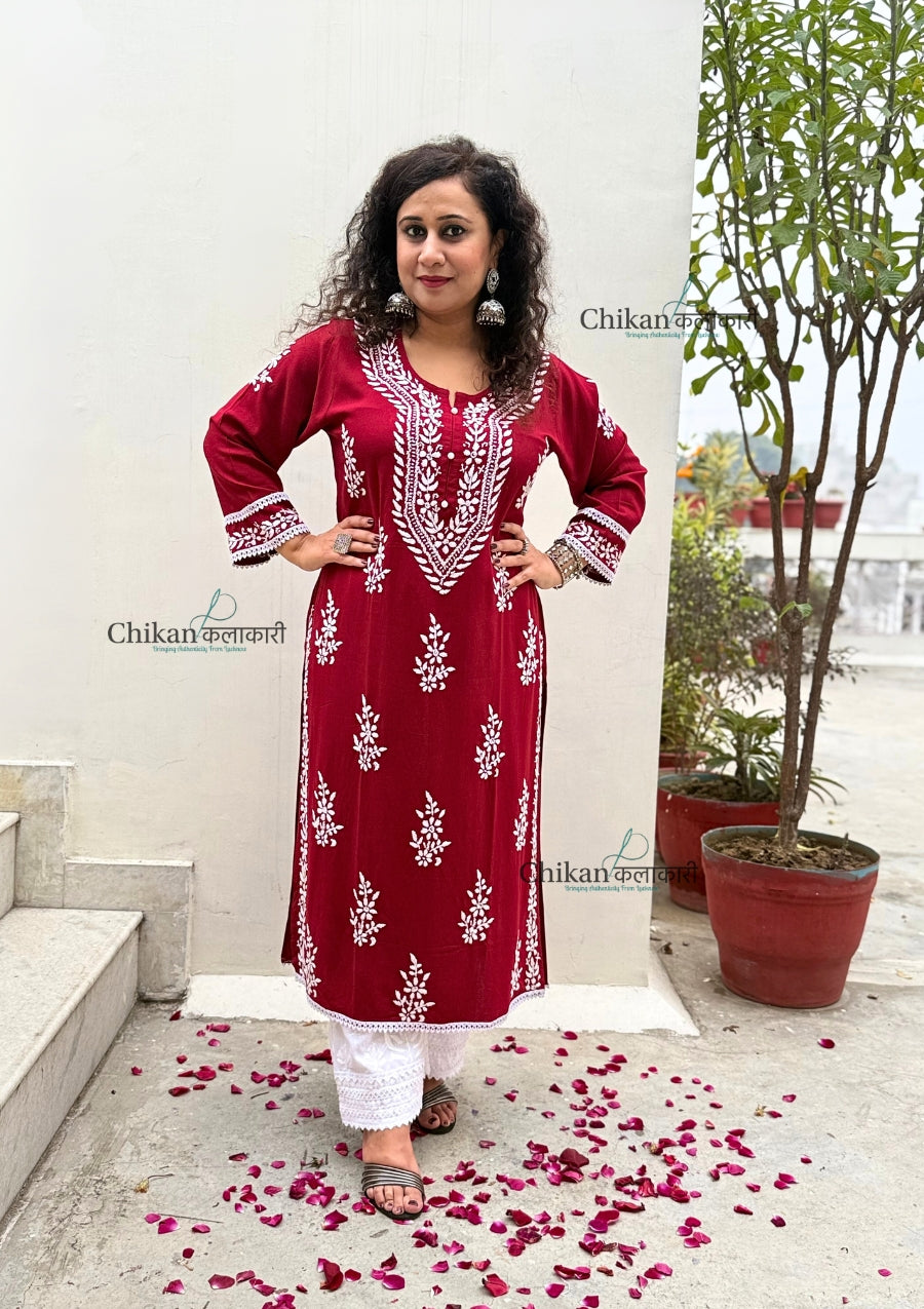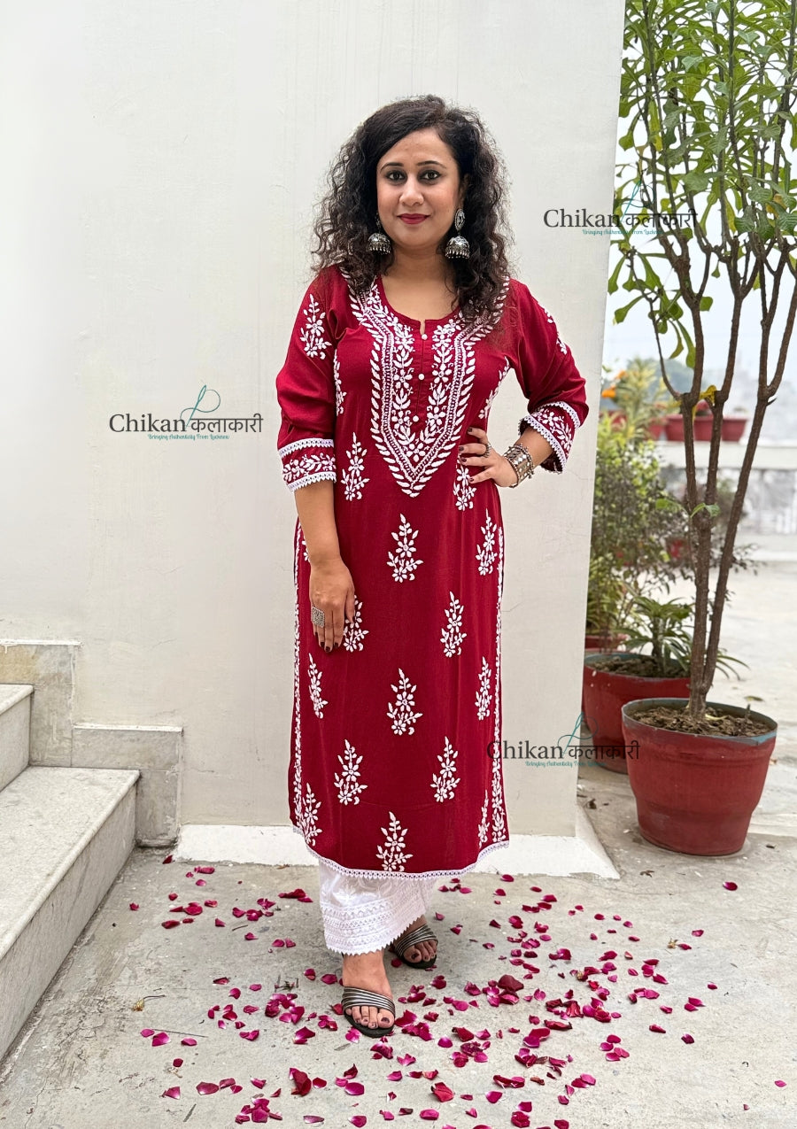 Nazneen Rayon Chikankari Kurti - Maroon