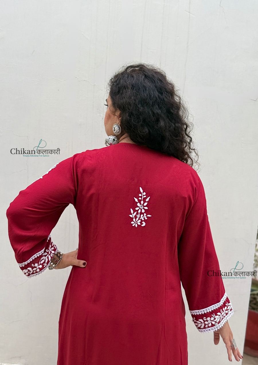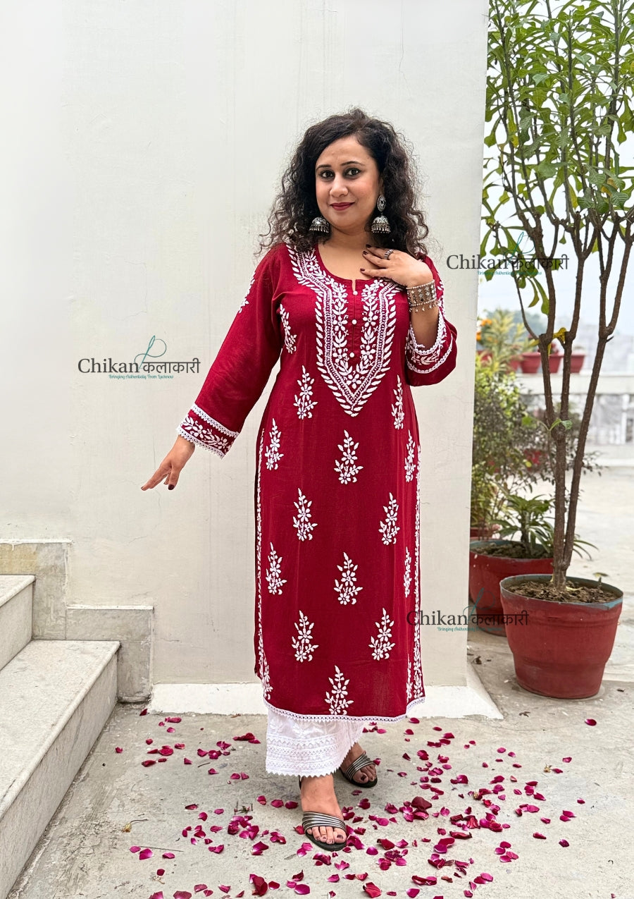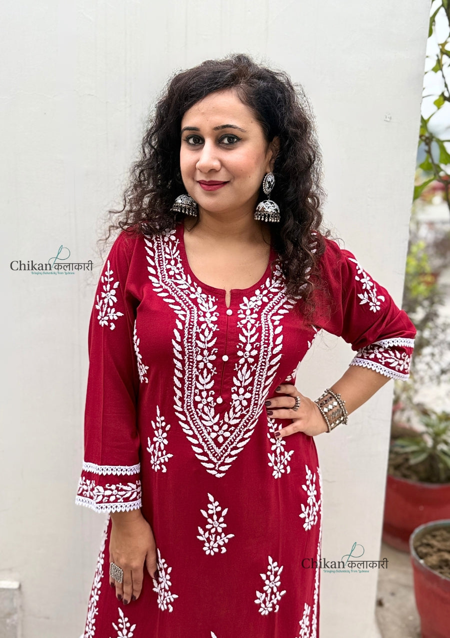 Nazneen Rayon Chikankari Kurti - Maroon