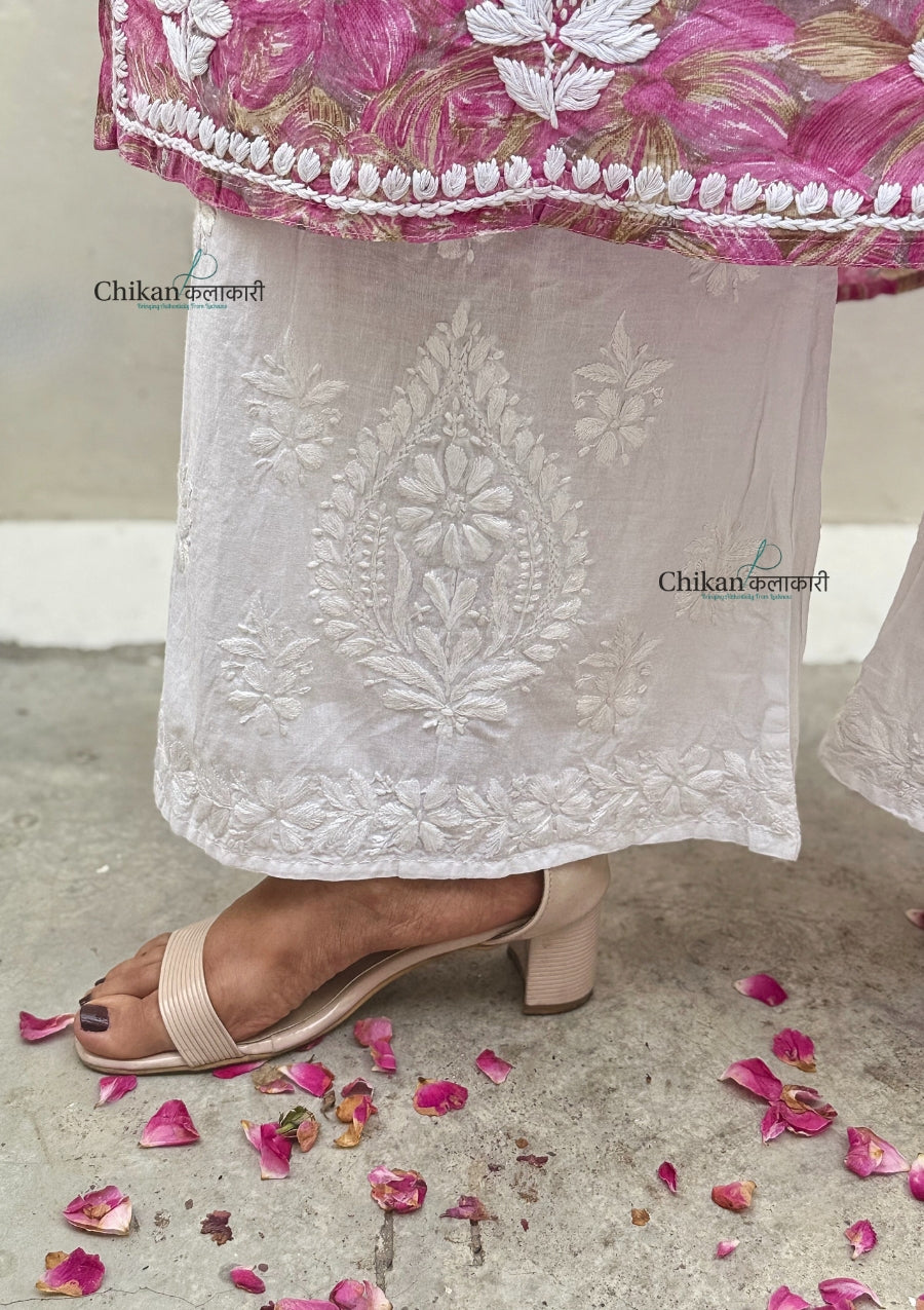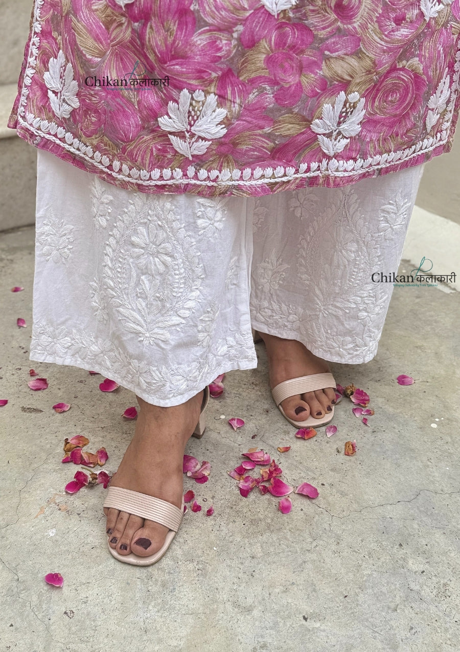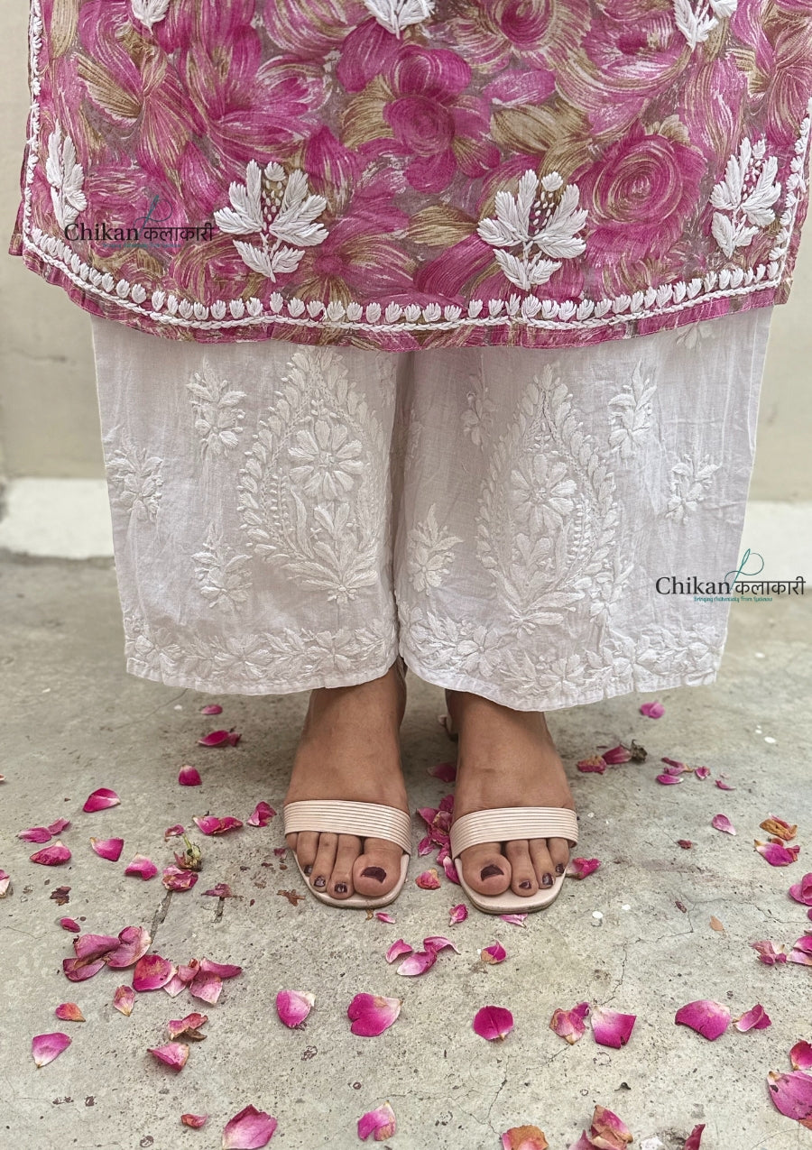 Discover the perfect balance of comfort and style with our Neena Cotton Chikankari Palazzo. This wardrobe staple is a must-have for all Chikankari lovers. Suitable for all-day comfort and casual outings. Embrace effortless elegance with this elegant chikankari palazzo.