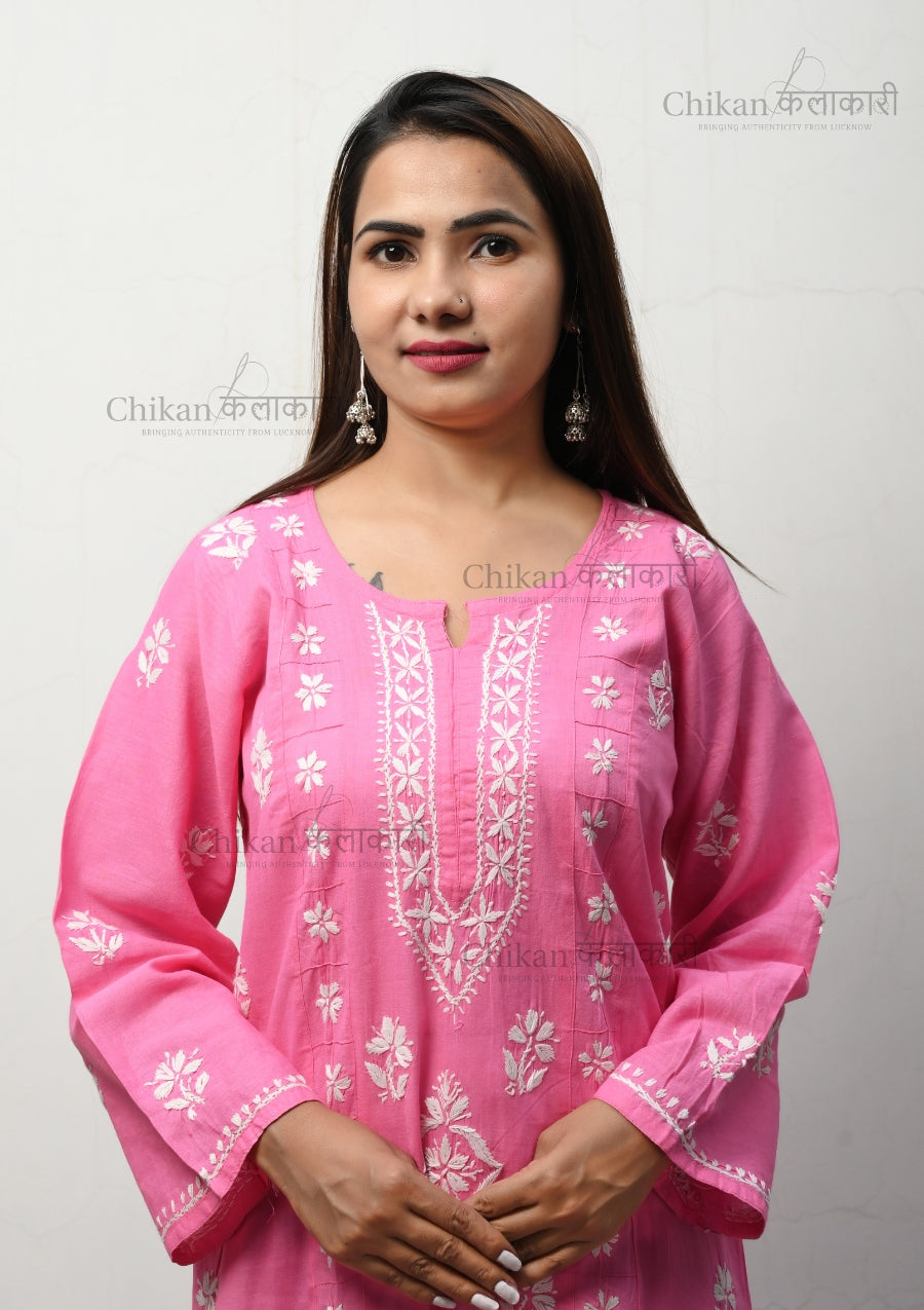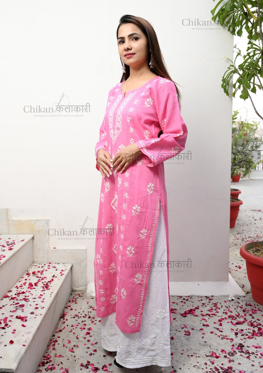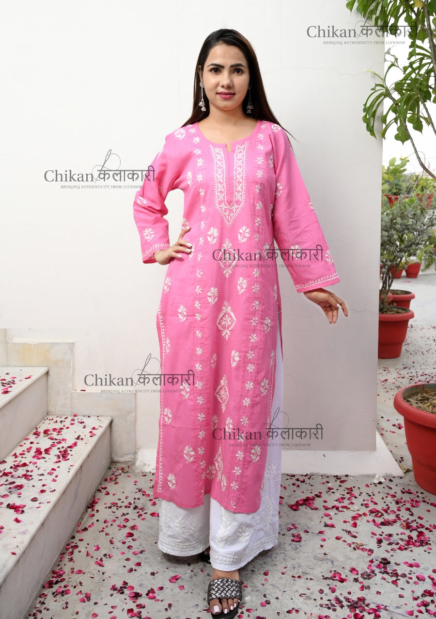 Look effortlessly cool and chic in Nida Cotton Chikankari Kurti. Crafted with soft cotton and detailed with hand-embroidered chikankari, this piece will look beautiful and graceful. The lightweight fabric is both comfortable and breathable for all-day wear. Show off your unique fashion sense with this timeless wardrobe staple!