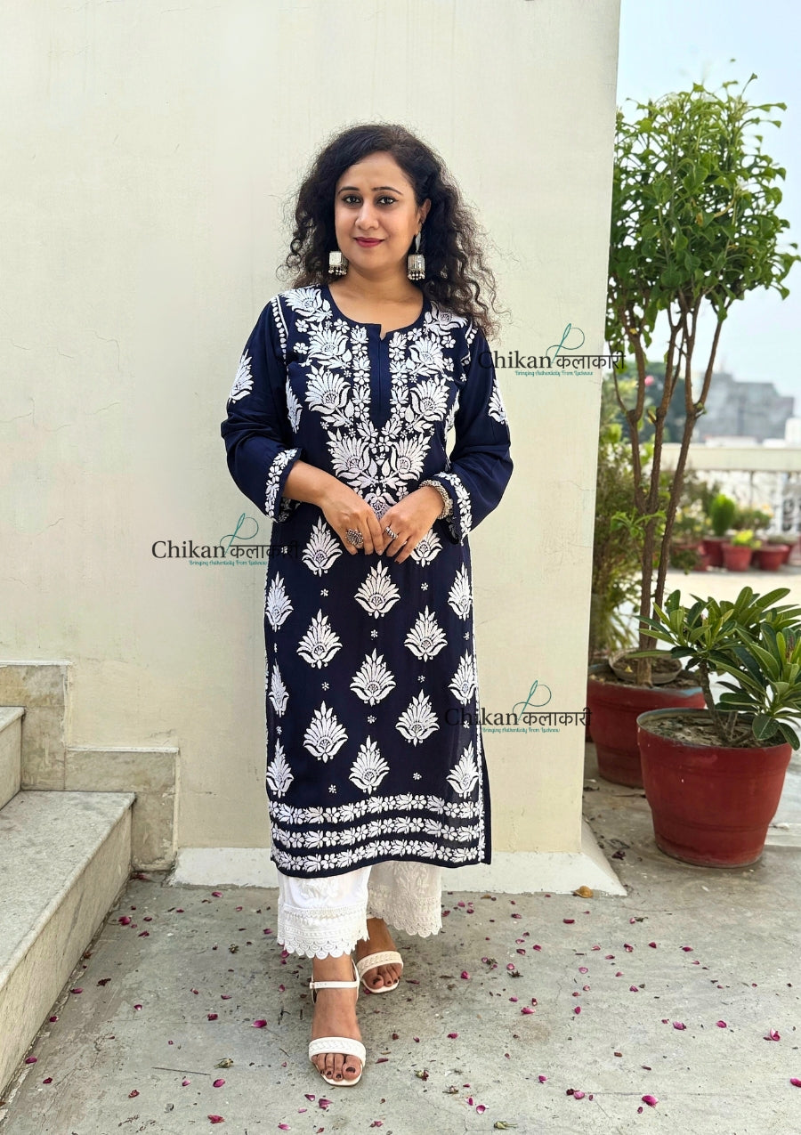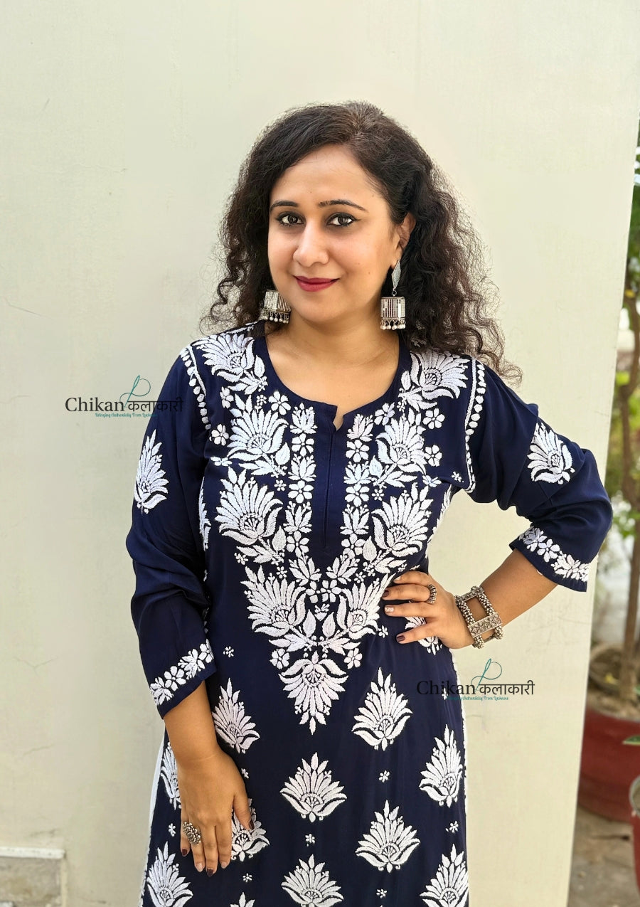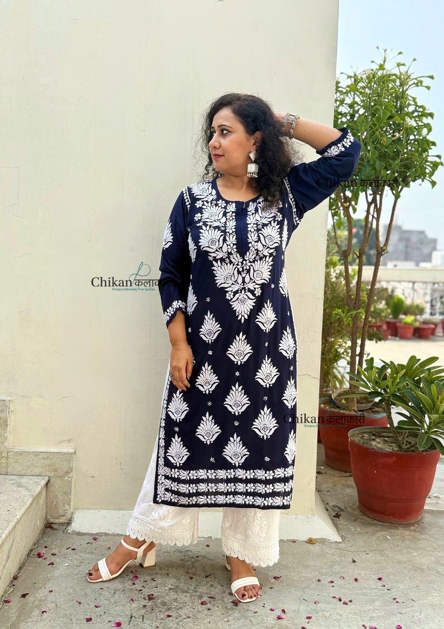 Pankhudi Modal Chikankari Kurti is made from luxurious premium modal fabric and features intricate hand embroidery for a truly attractive design. Elevating your wardrobe with intricate details, this kurti will surely impress. Upgrade your style with this expertly crafted elegant piece.