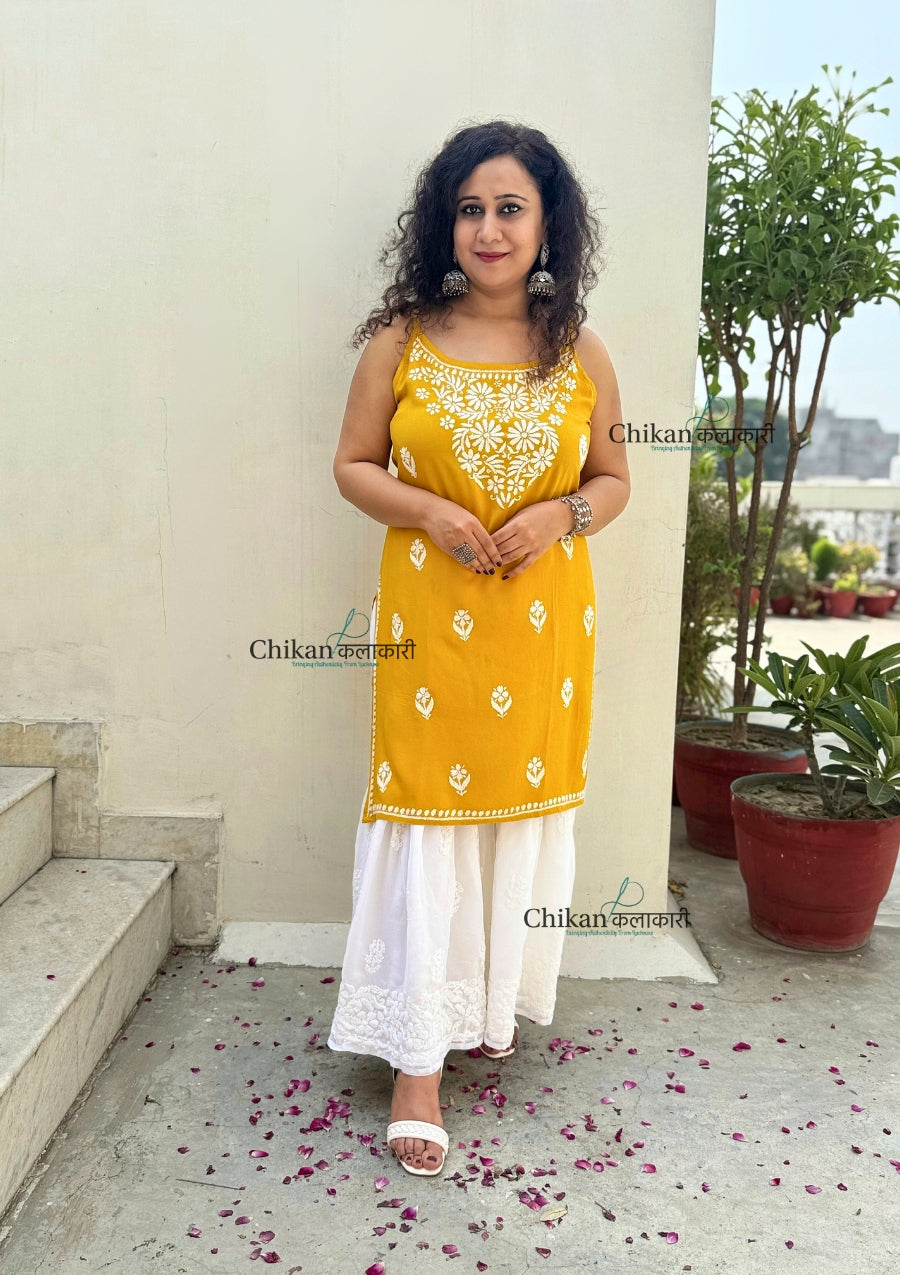 Reeba Short Rayon Chikankari Kurti - Yellow