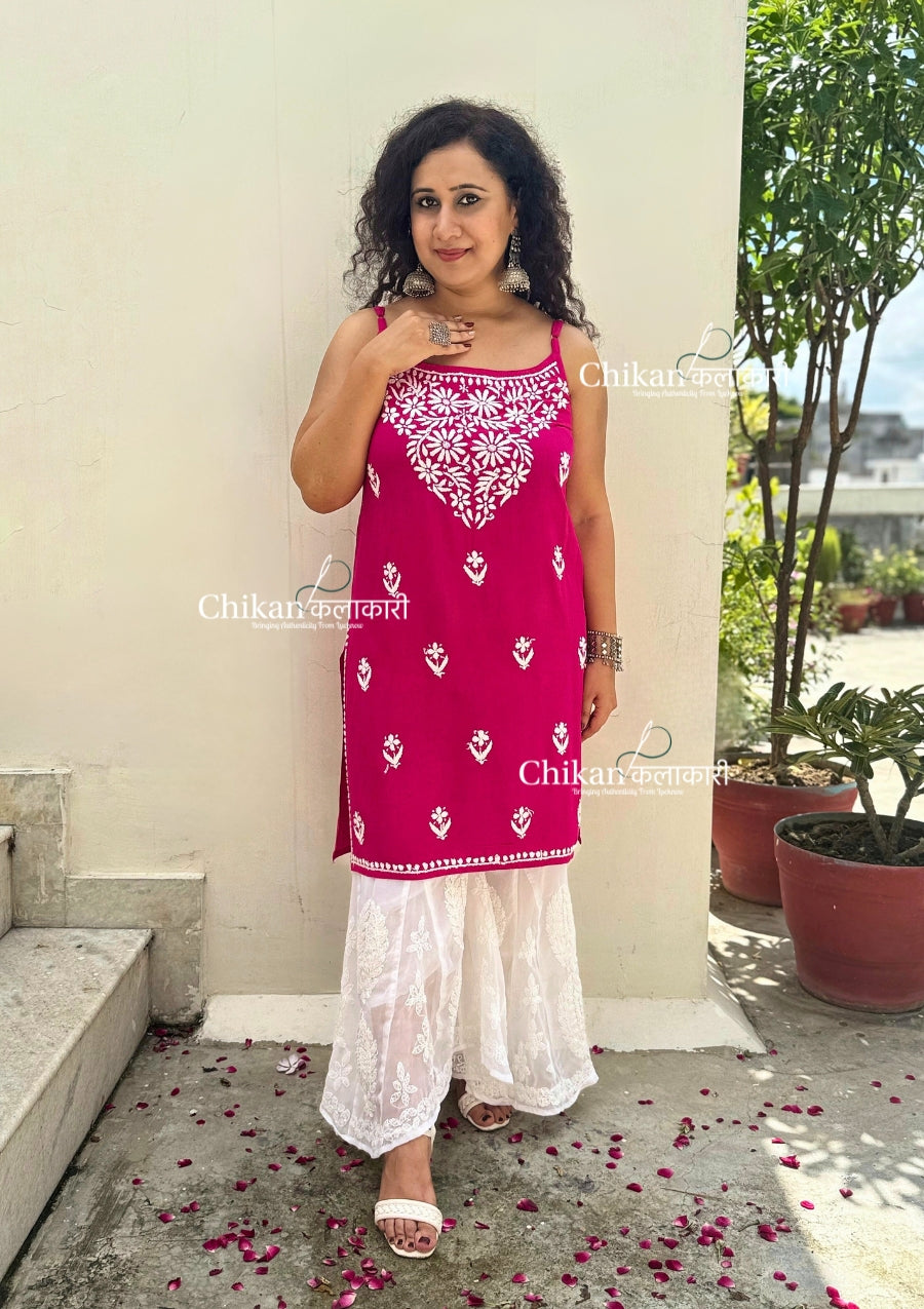 Reeba Short Rayon Chikankari Kurti - Magenta