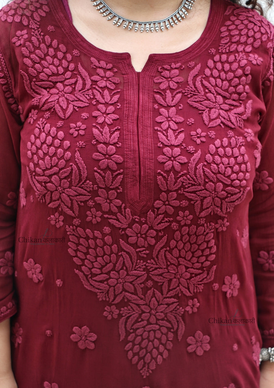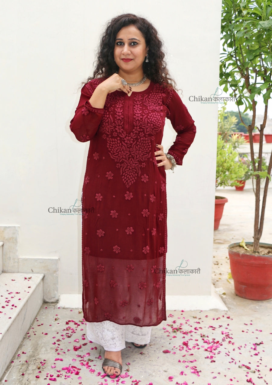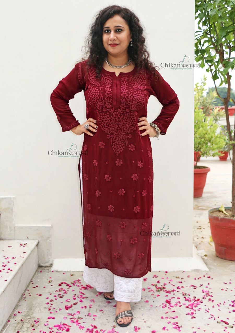 Experience luxury and elegance with our RiyaanaViscose Chikankari Kurti. Made from high-quality Viscose fabric and hand-embroidered with intricate details, this chikankari Kurti exudes sophistication. Elevate your wardrobe with this gorgeous Chikankari Kurti and make a statement wherever you go.