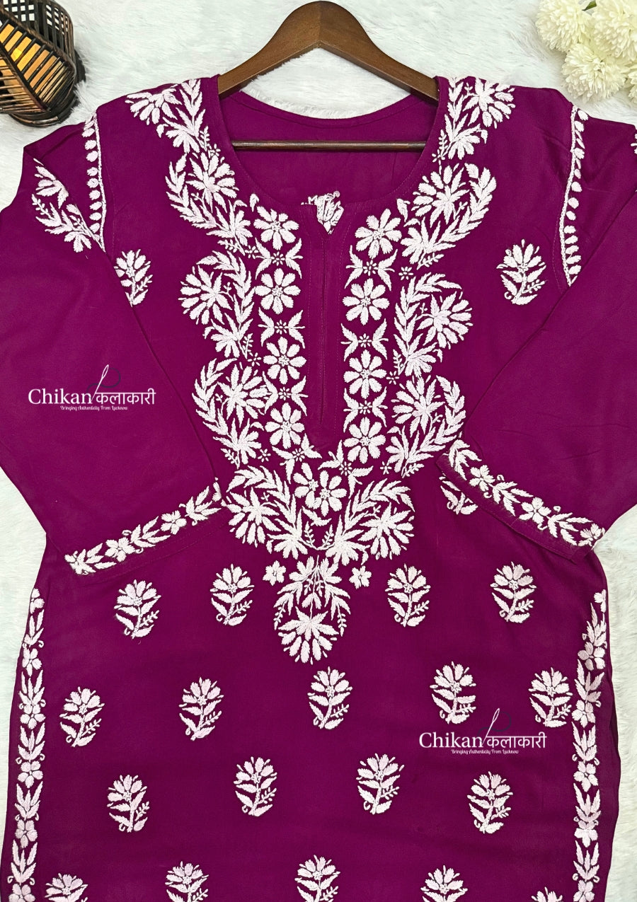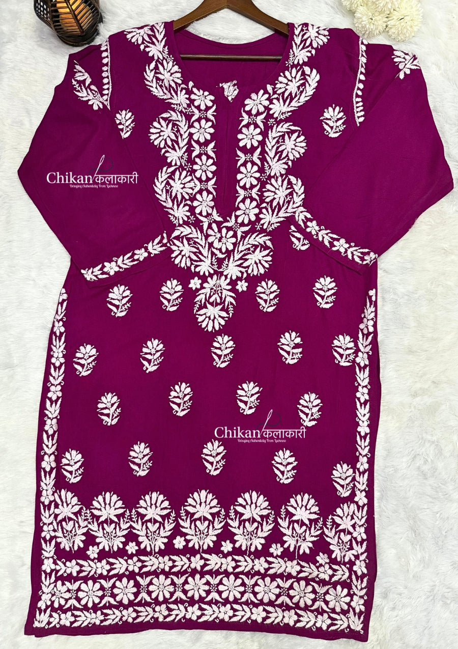 Crafted from the soft rayon fabric, Rubab Rayon Chikankari Kurti offers the perfect blend of style and comfort. This timeless piece has a straight fit, making it an ideal choice for elegant look.