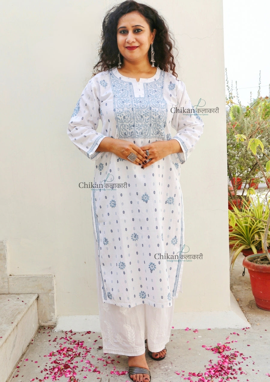 Style Tip: Pair Safa White Chikankari Kurti with cotton chikankari palazzo or pants for an elegant look!