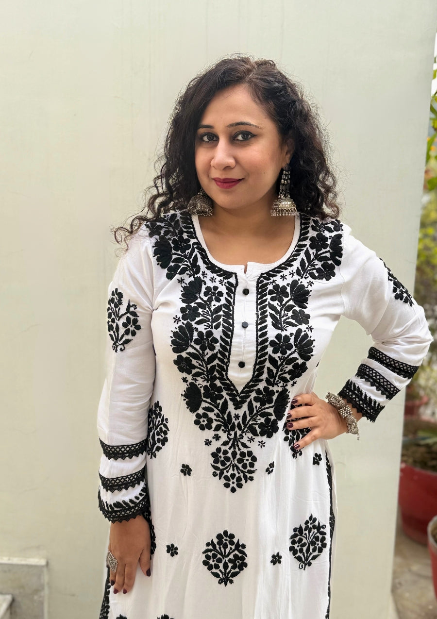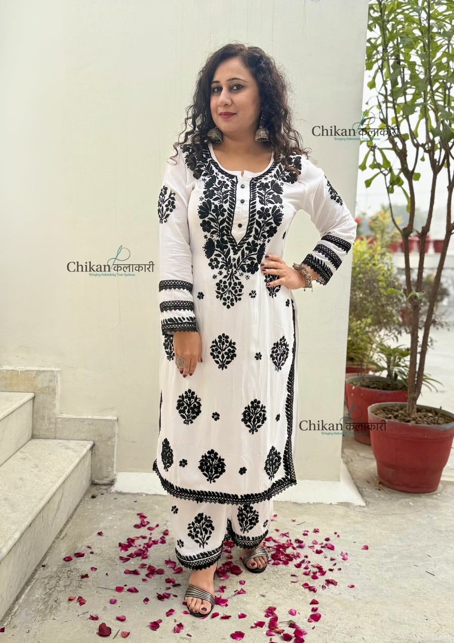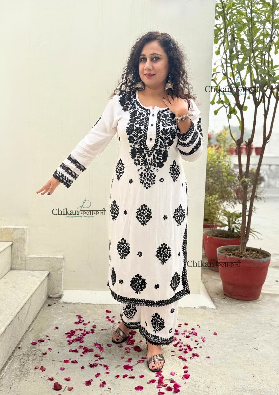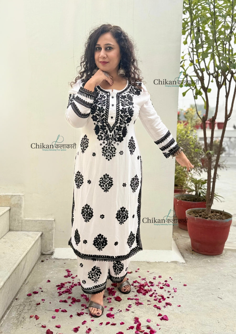 This Sameera Rayon Chikankari Kurti Set is a stunning outfit crafted with expert craftsmanship. It's produced using rayon fabric for effortless breathability and comfort. The intricate Chikankari embroidery and lace details add an elegant finishing touch for a beautiful style. Enjoy a beautiful look with this stylish yet classic set.