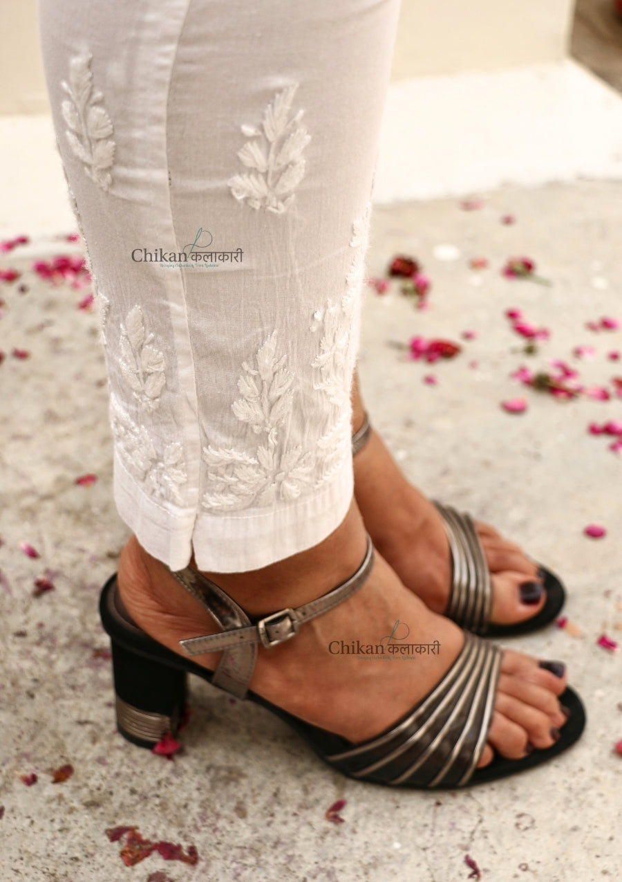 Upgrade your wardrobe with our Samreen Cotton Chikankari Pants! Made from stretchable cotton, these pants provide a comfortable fit and feature intricate Chikankari hand embroidery. They fit up to large size and have a full elastic waist, adding convenience and style to any outfit. Perfect for any occasion.