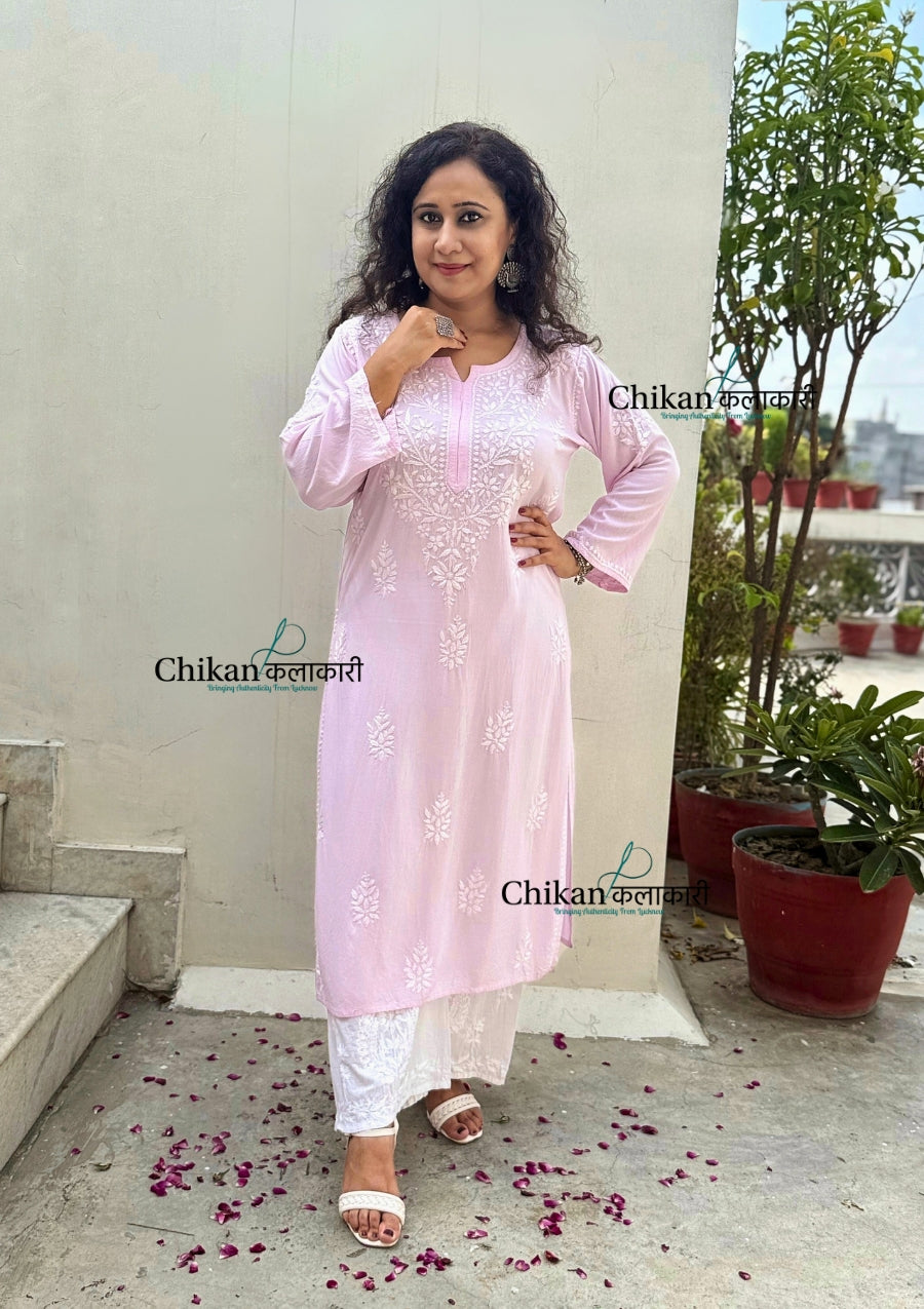 Crafted with care from soft rayon fabric and adorned with delicate Chikankari hand embroidery, Tanya Rayon Chikankari Kurti exudes a timeless charm and ensures all-day comfort.